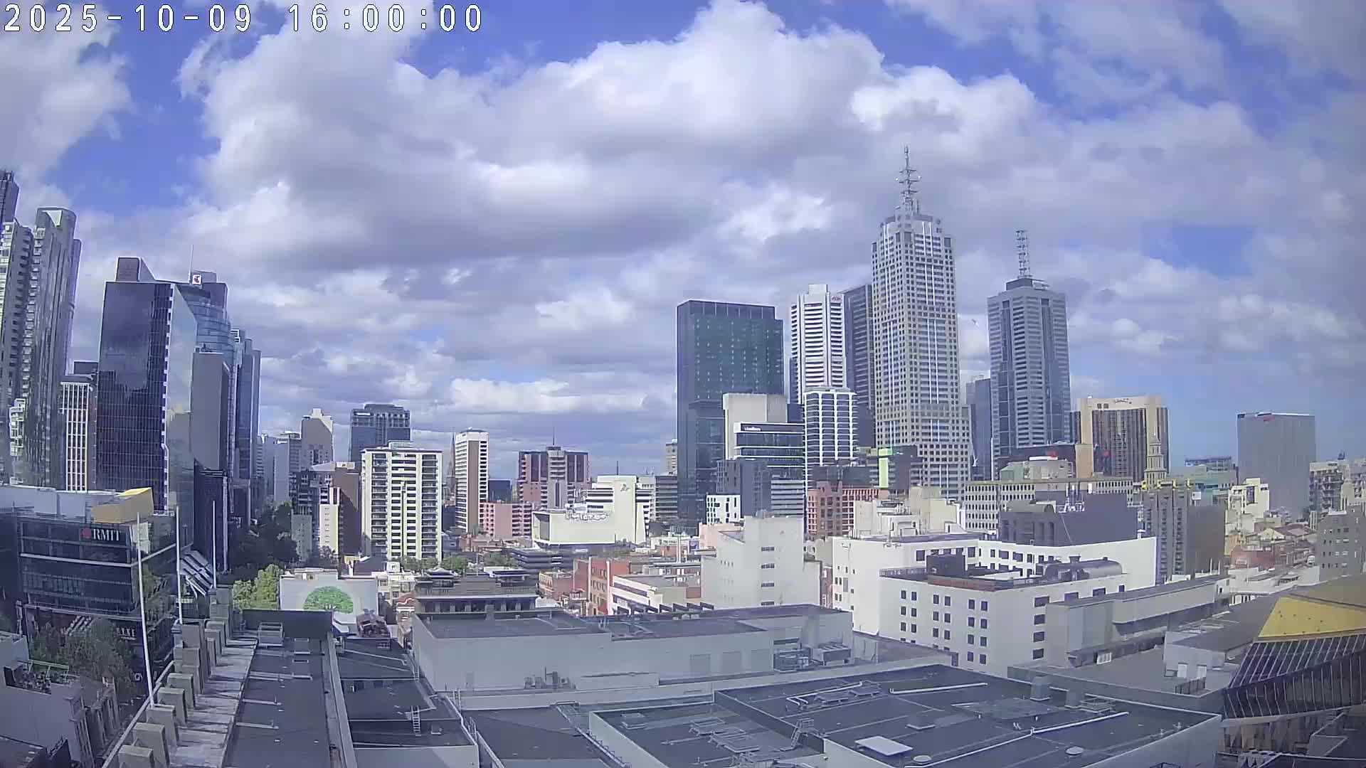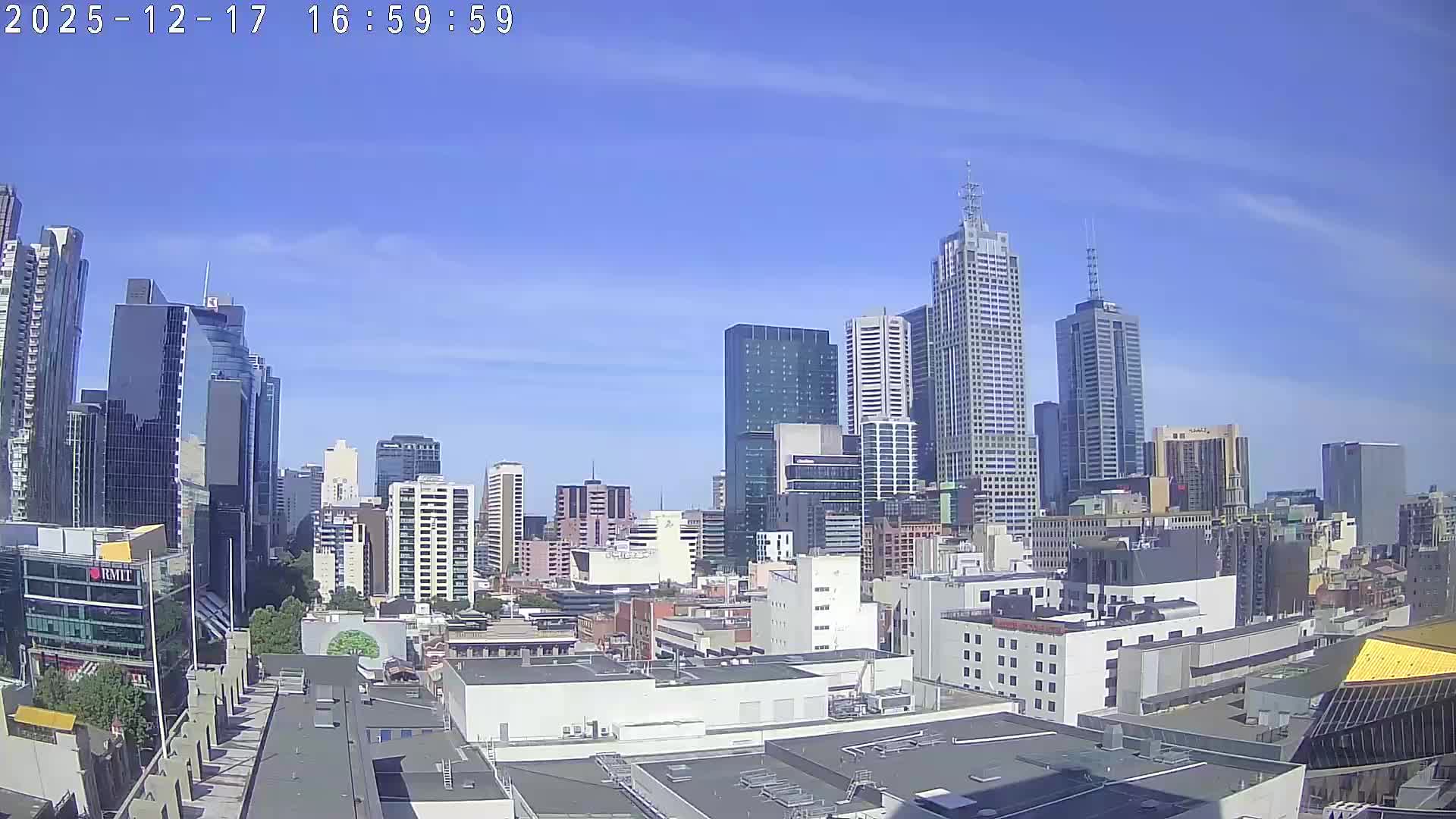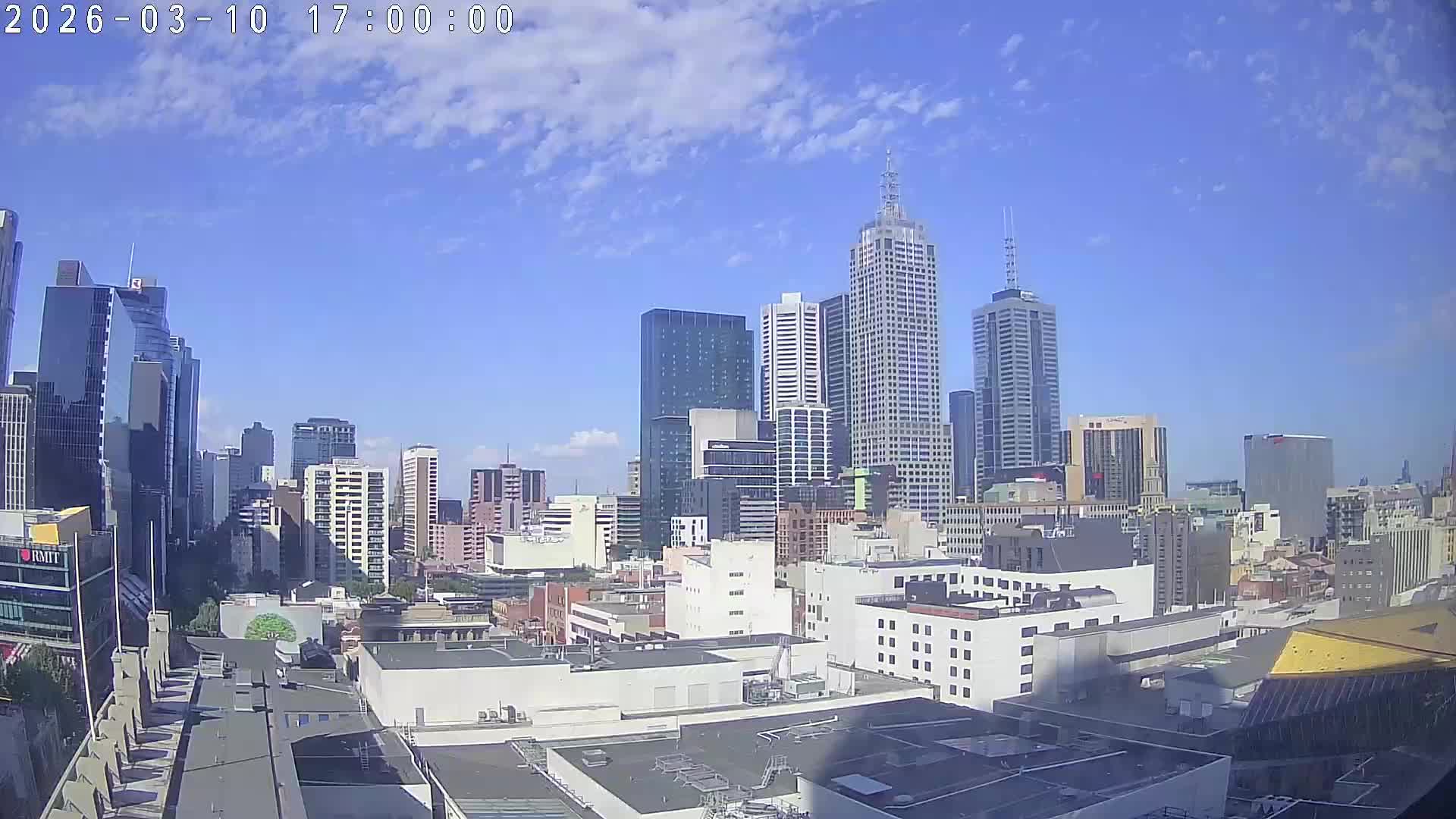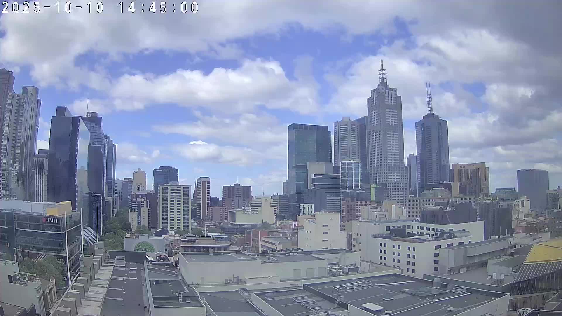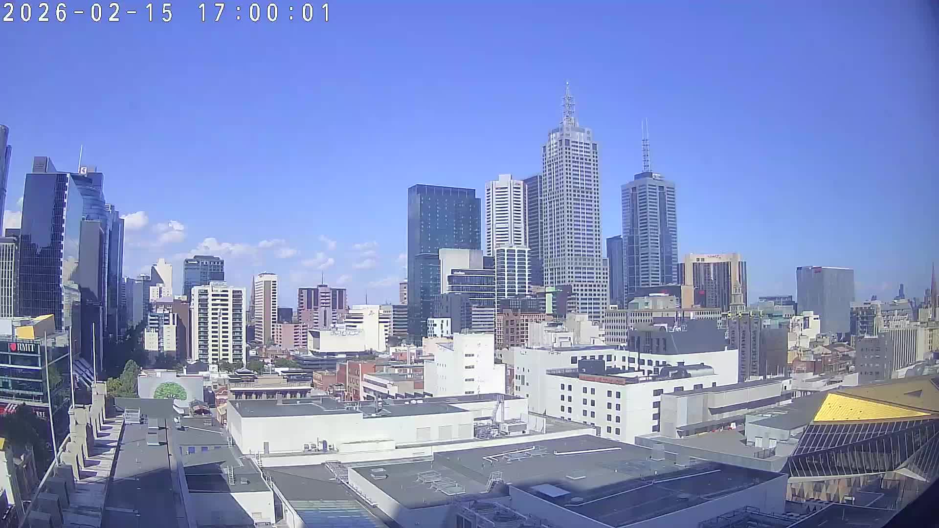 The camera is pointed approximately east towards the towers on the east end of Collins Street Melbourne.