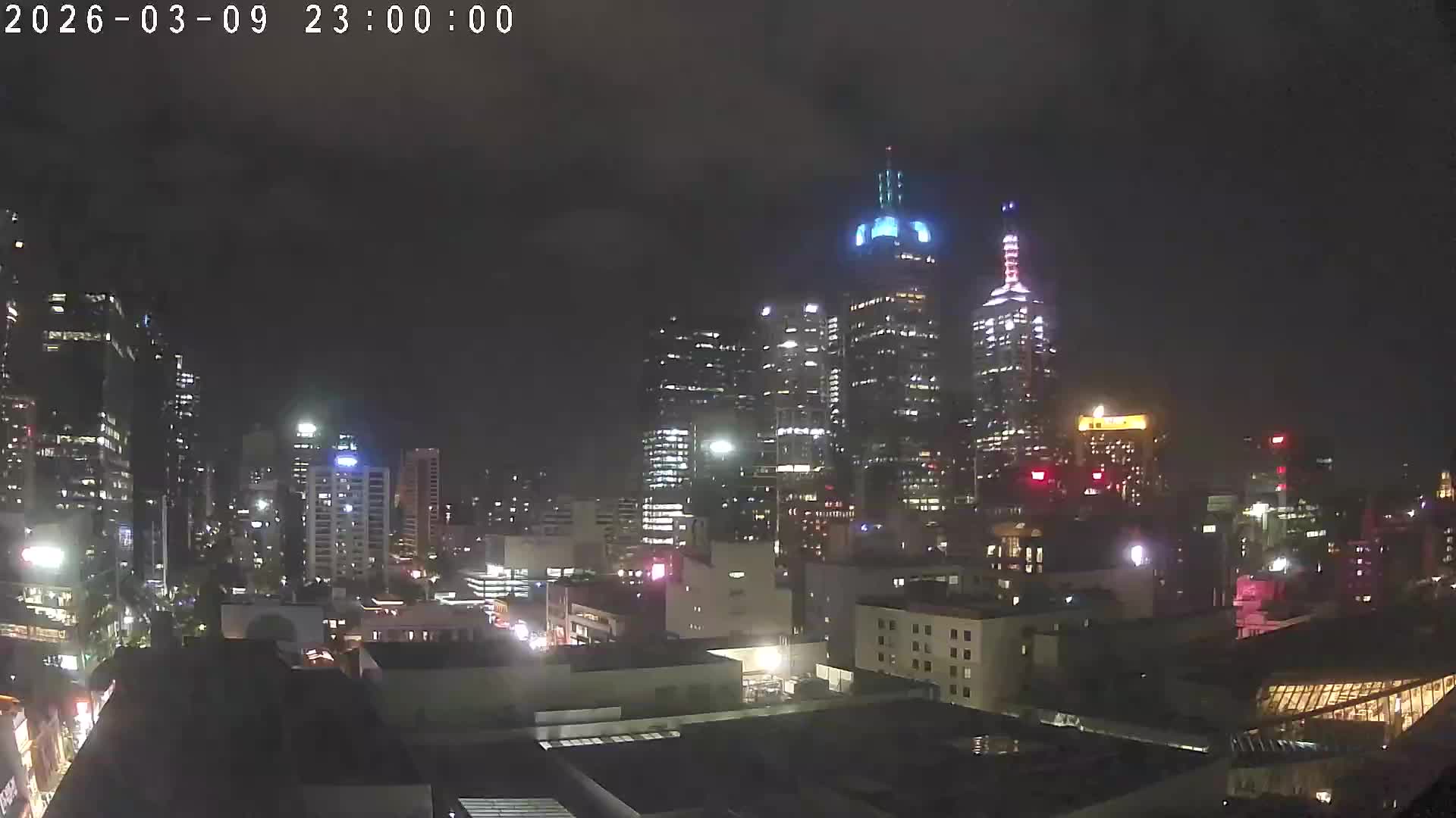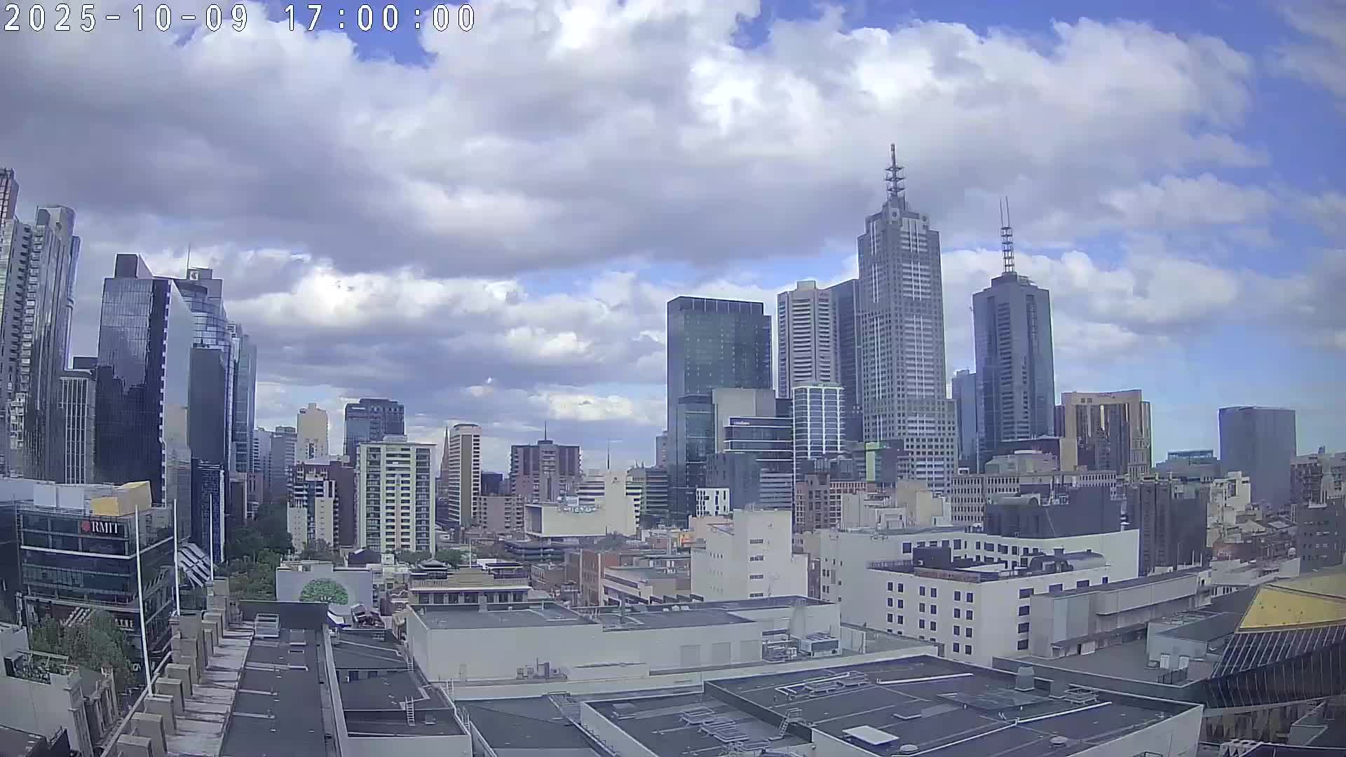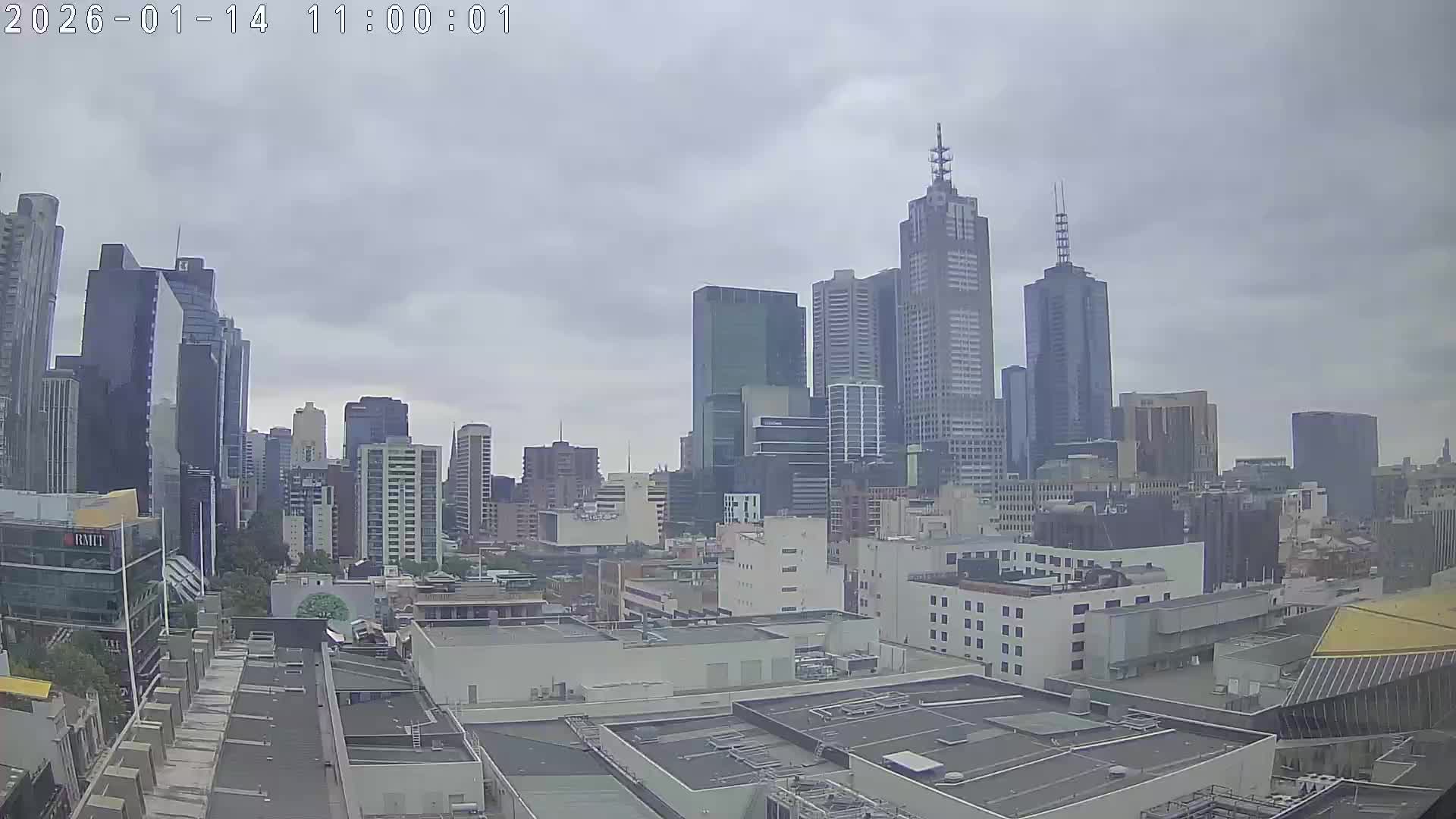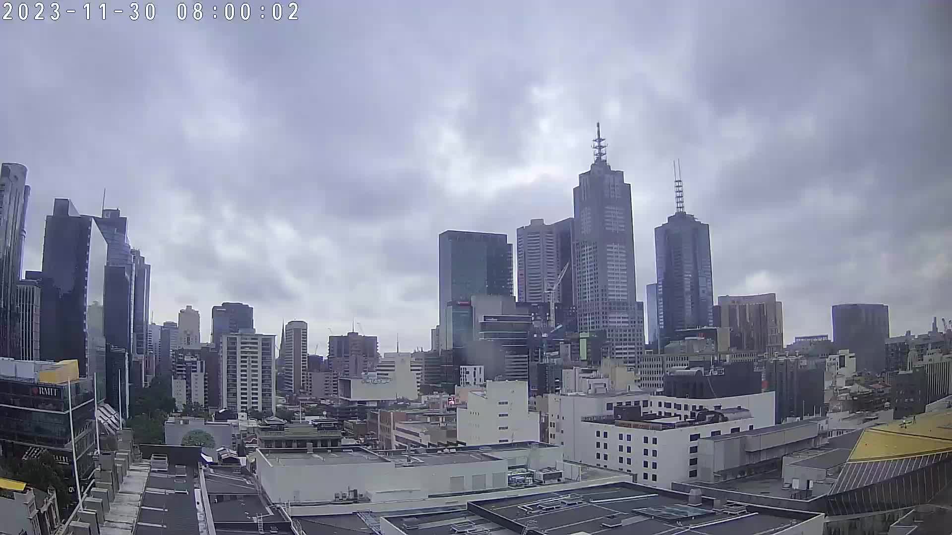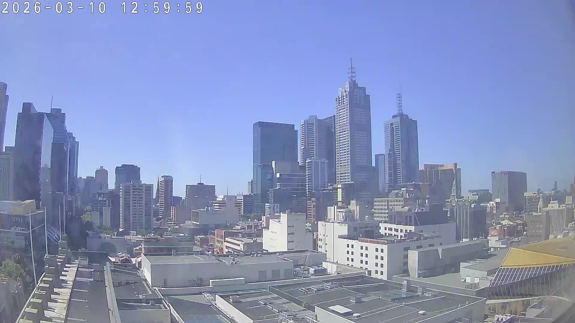 The camera is pointed approximately east towards the towers on the east end of Collins Street Melbourne.