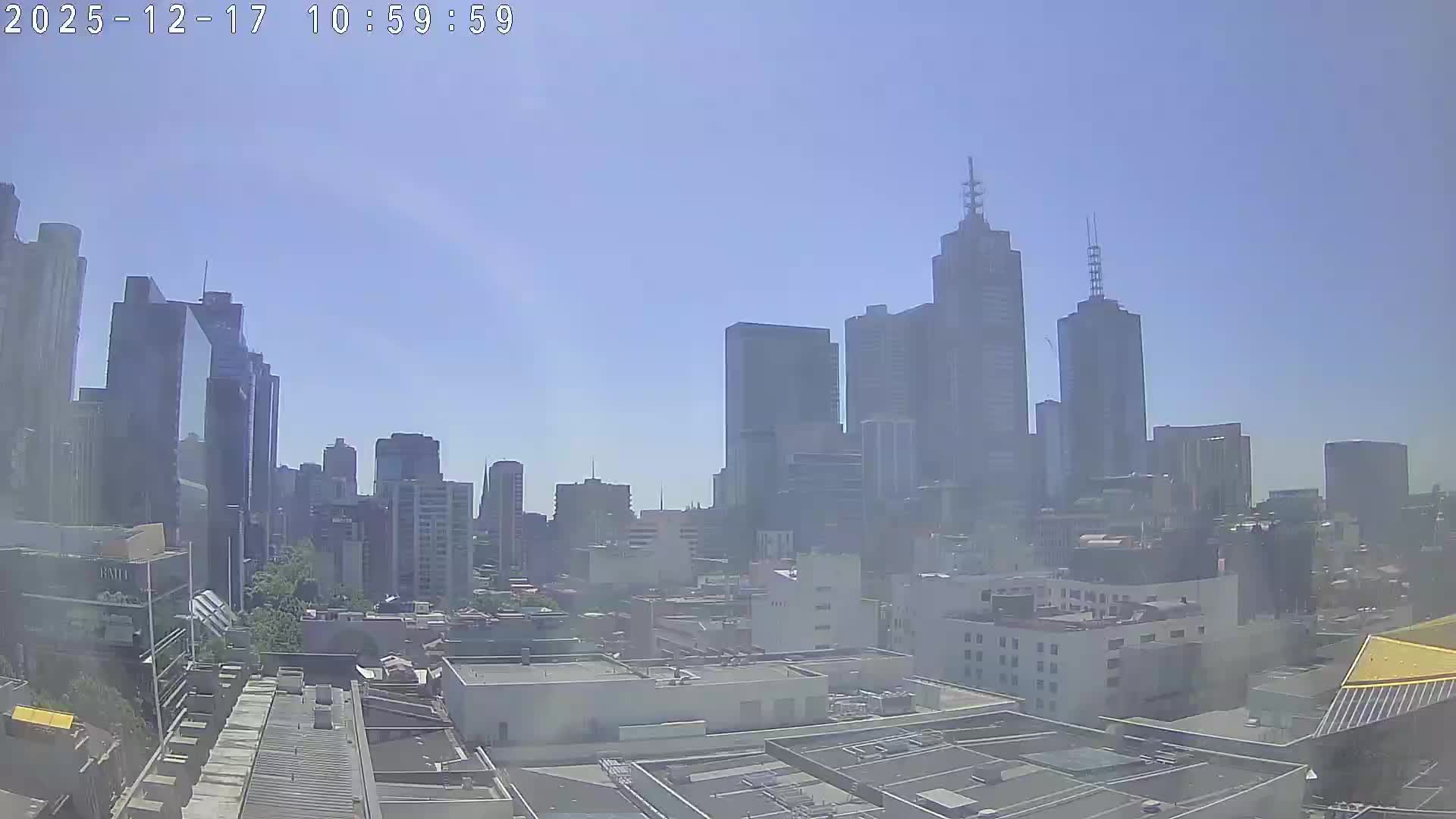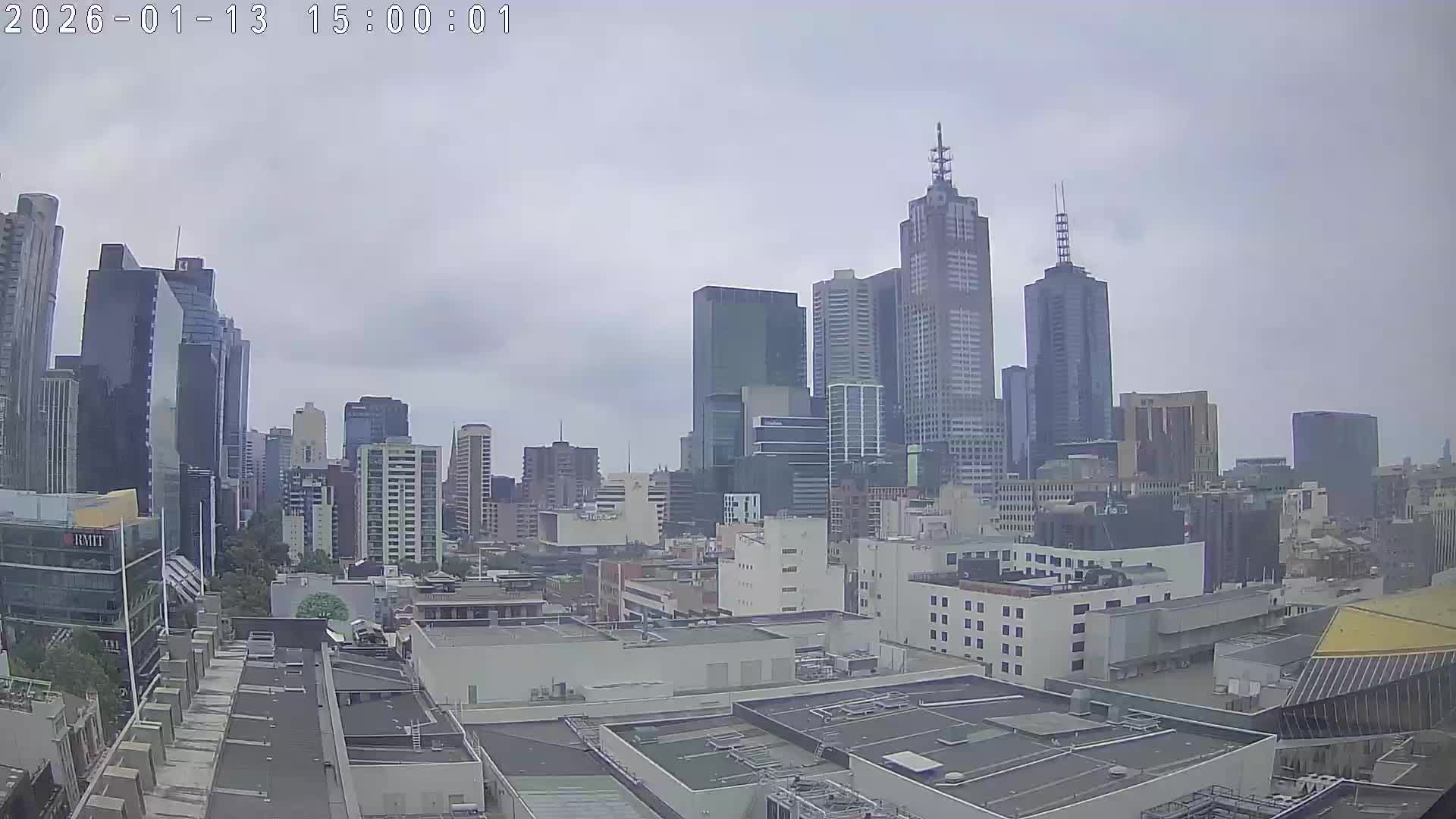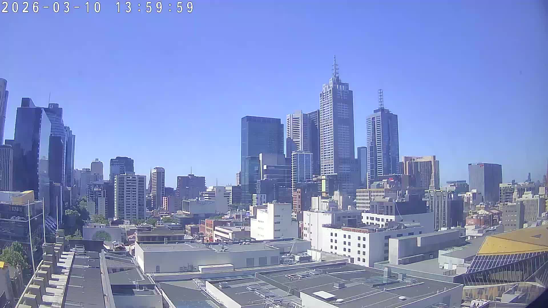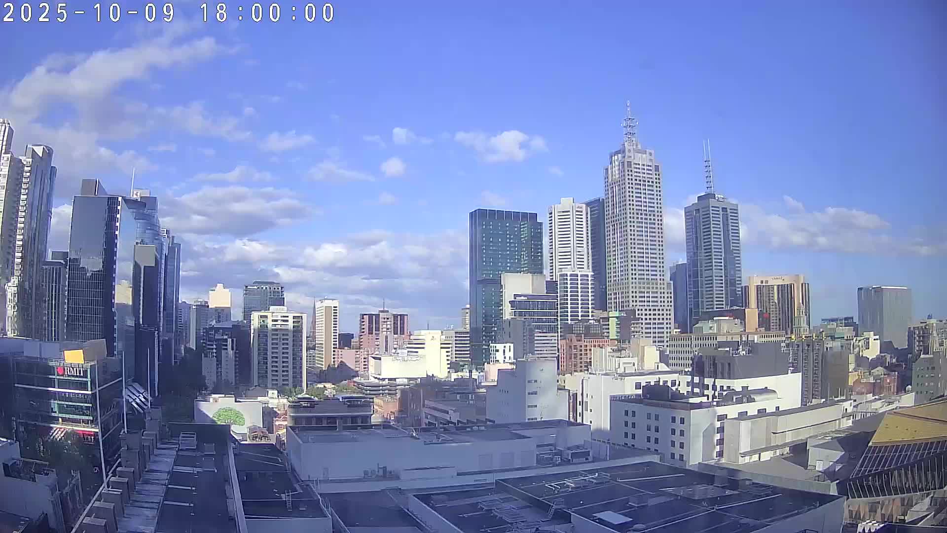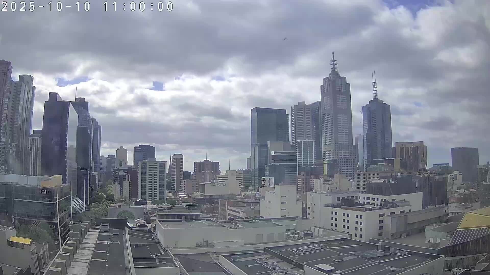 The camera is pointed approximately east towards the towers on the east end of Collins Street Melbourne.