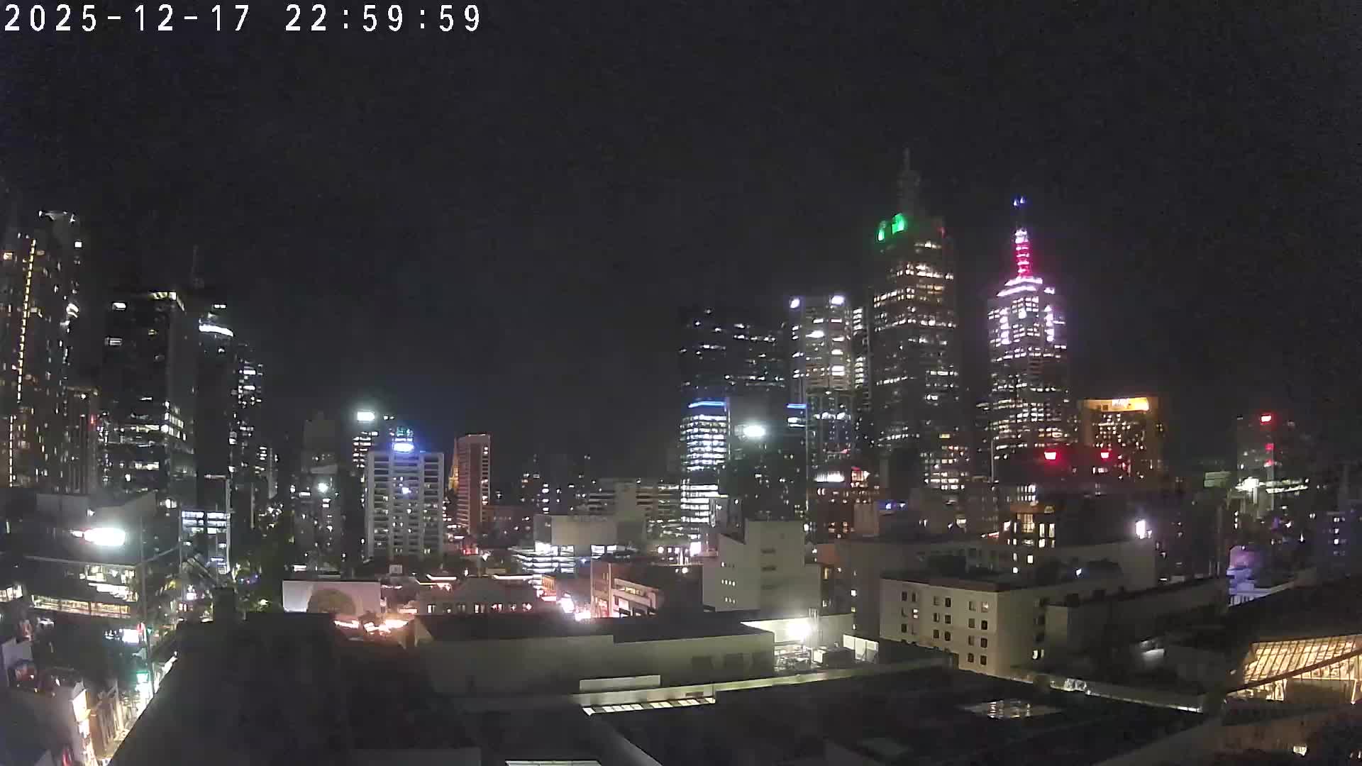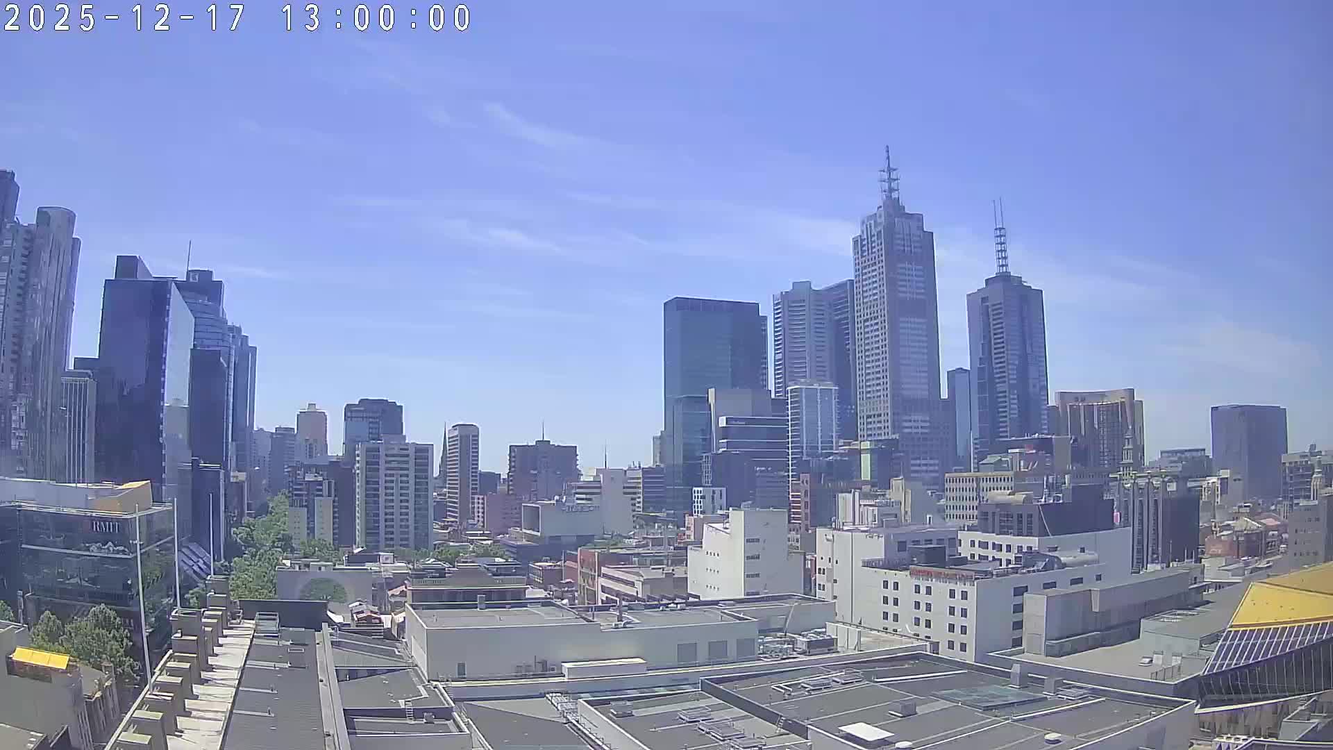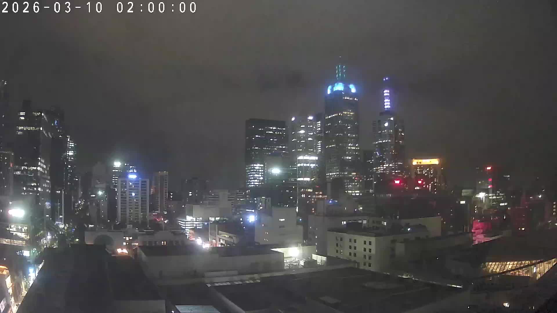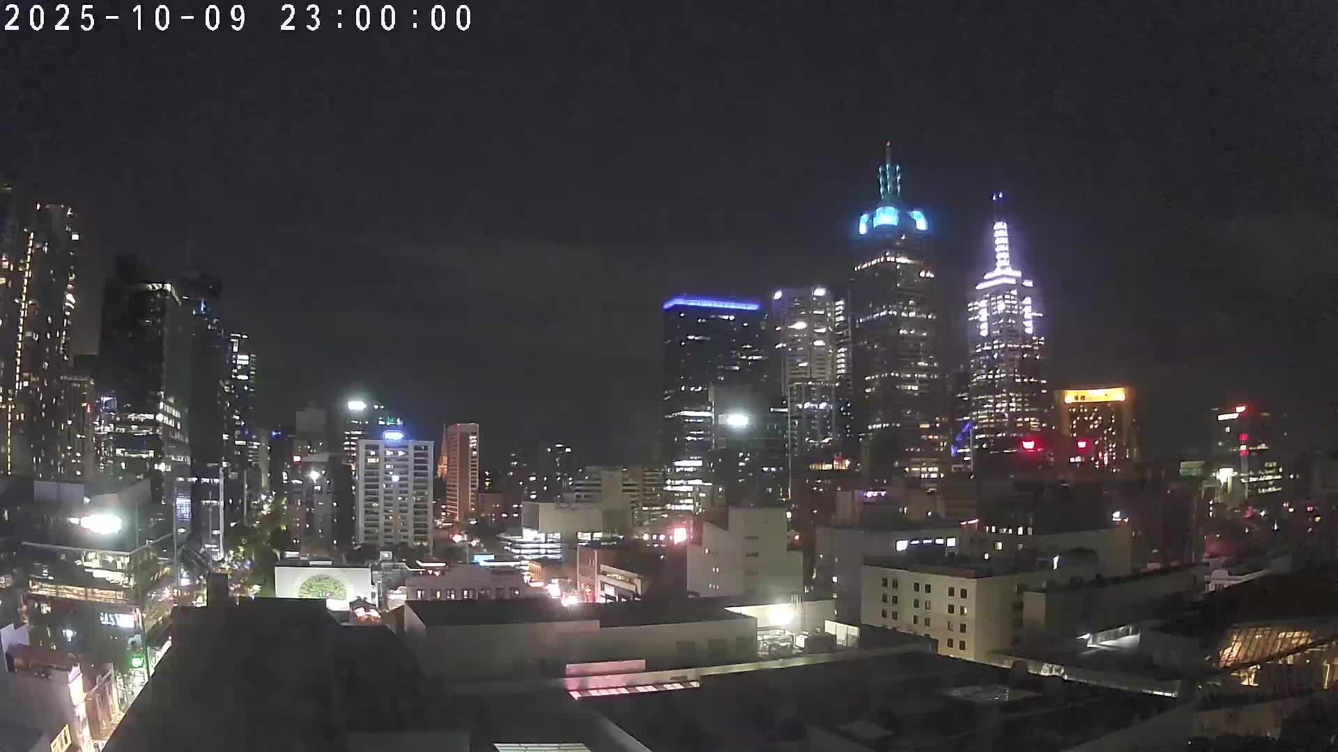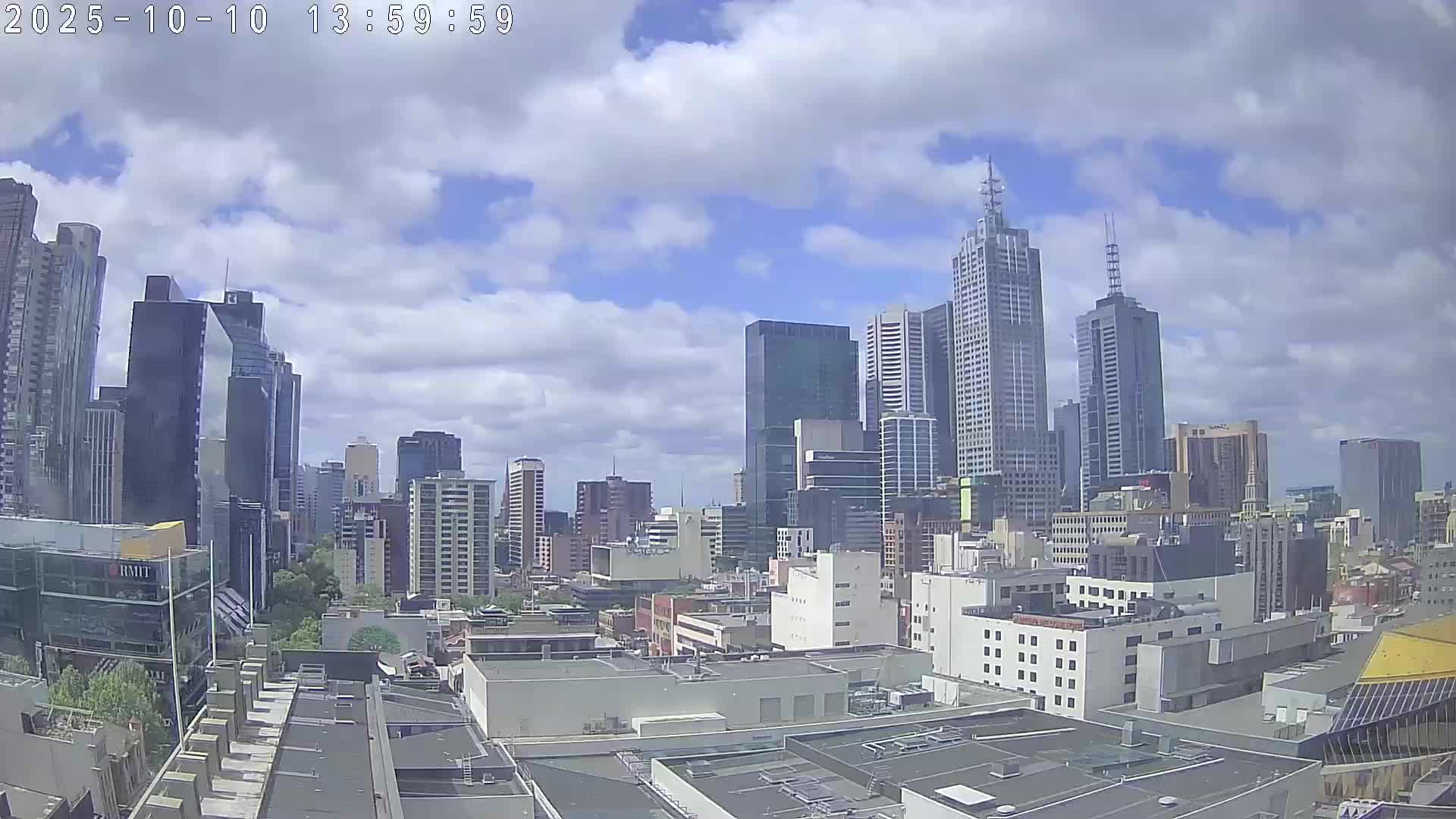 The camera is pointed approximately east towards the towers on the east end of Collins Street Melbourne.