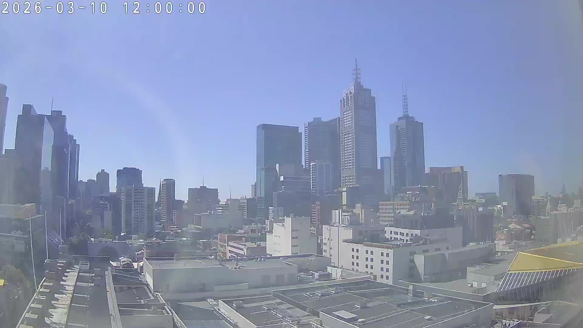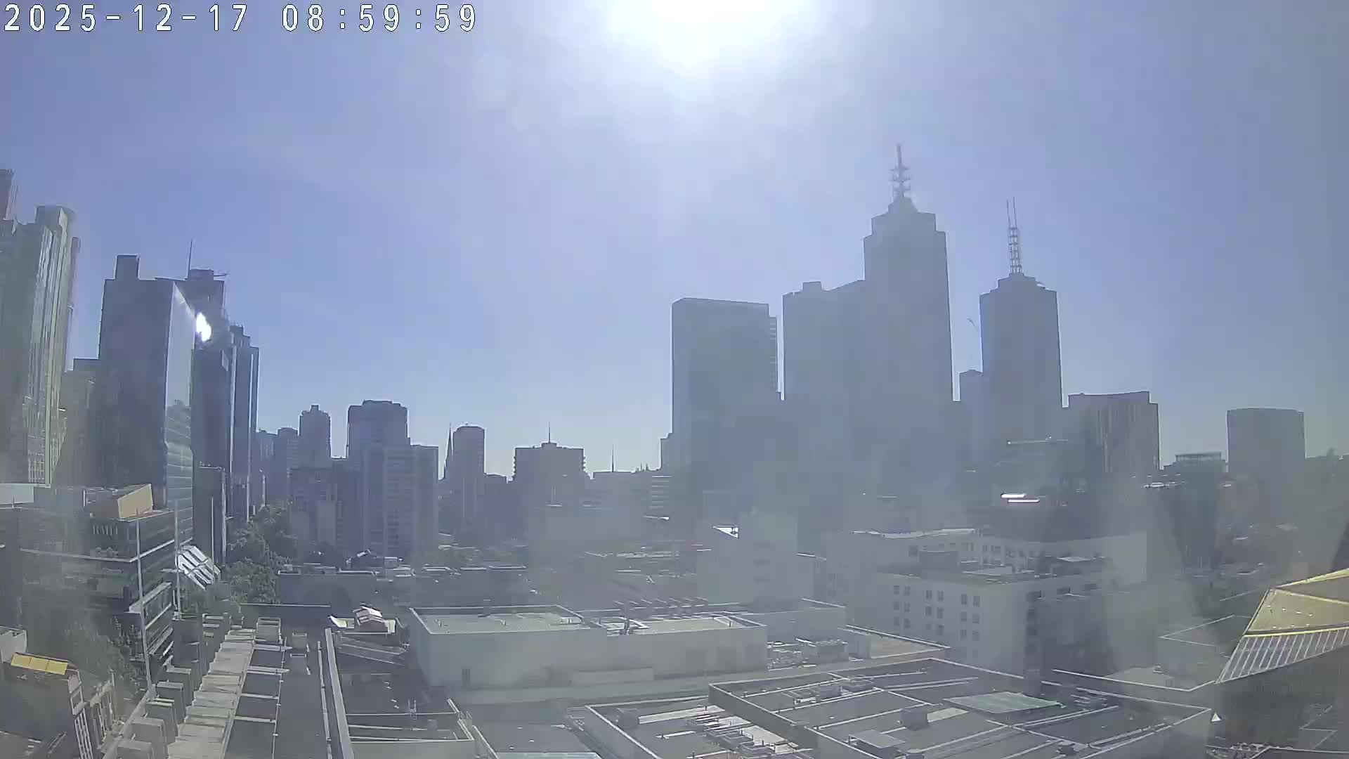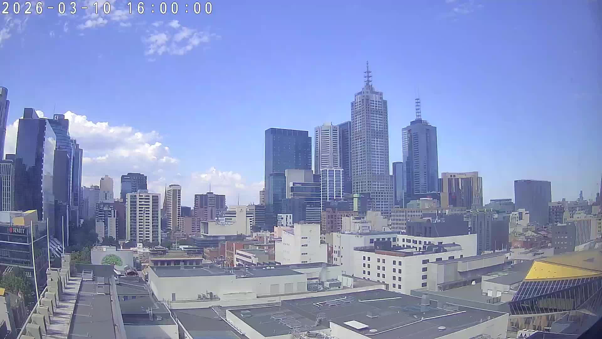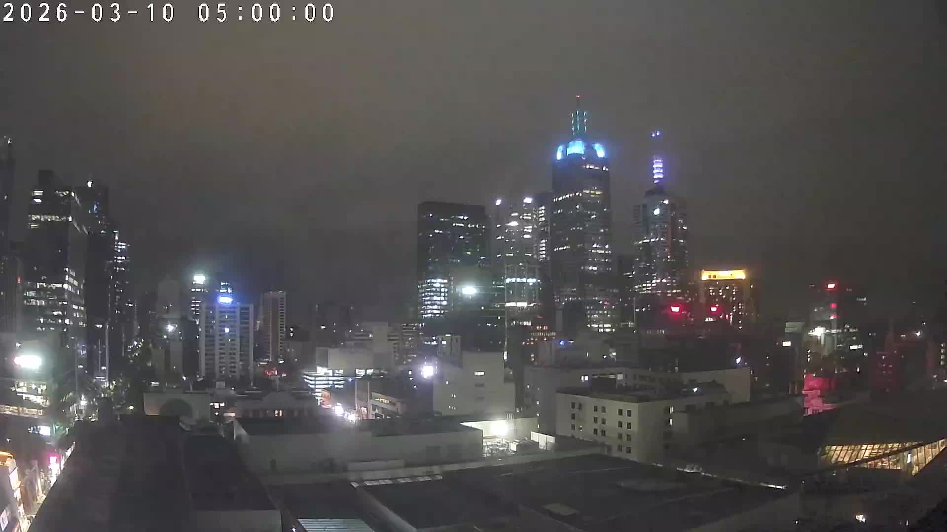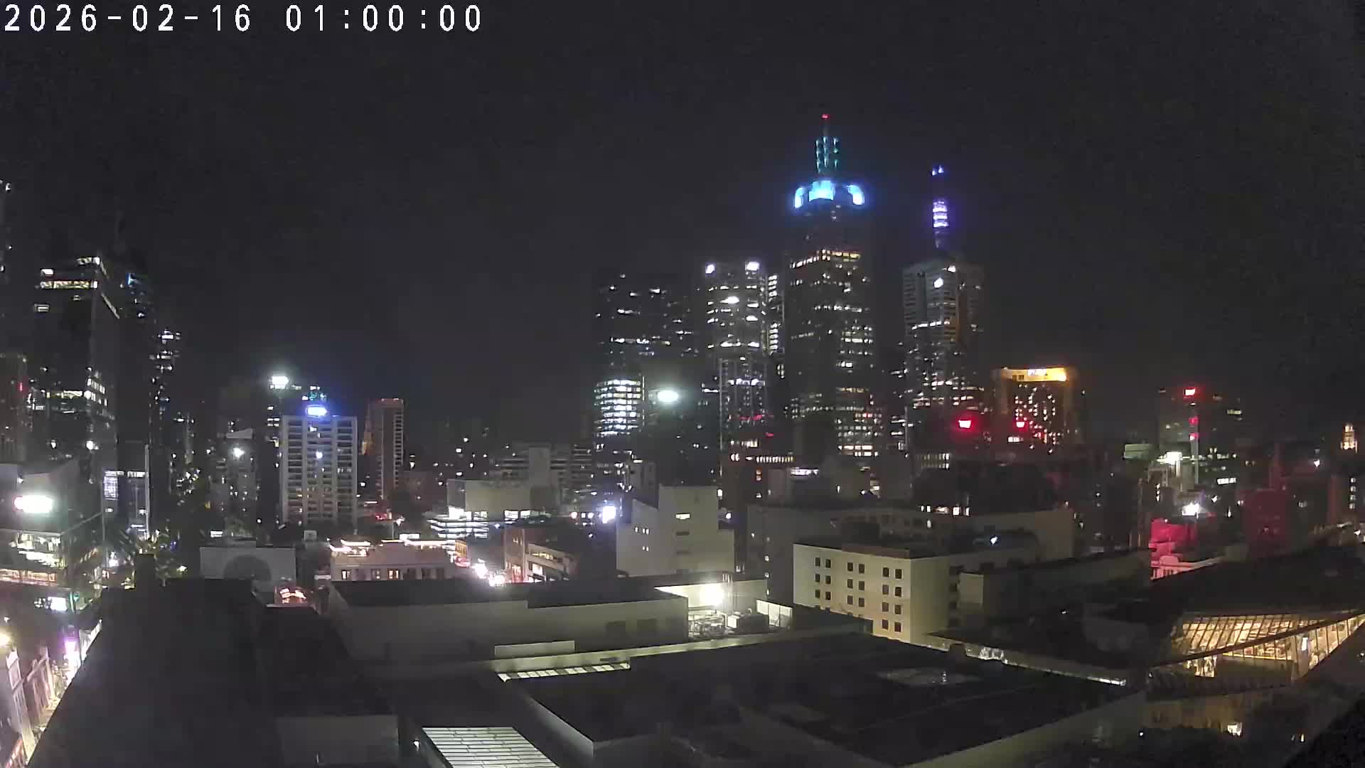 The camera is pointed approximately east towards the towers on the east end of Collins Street Melbourne.