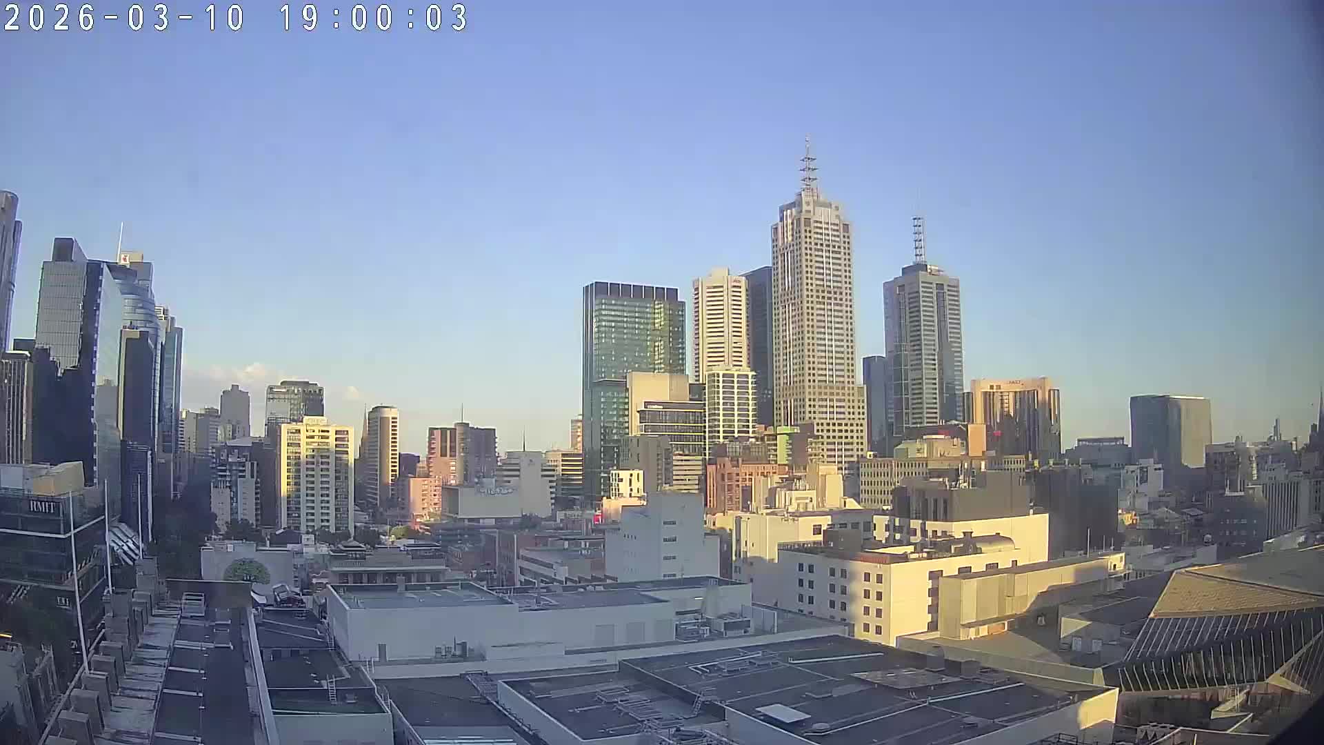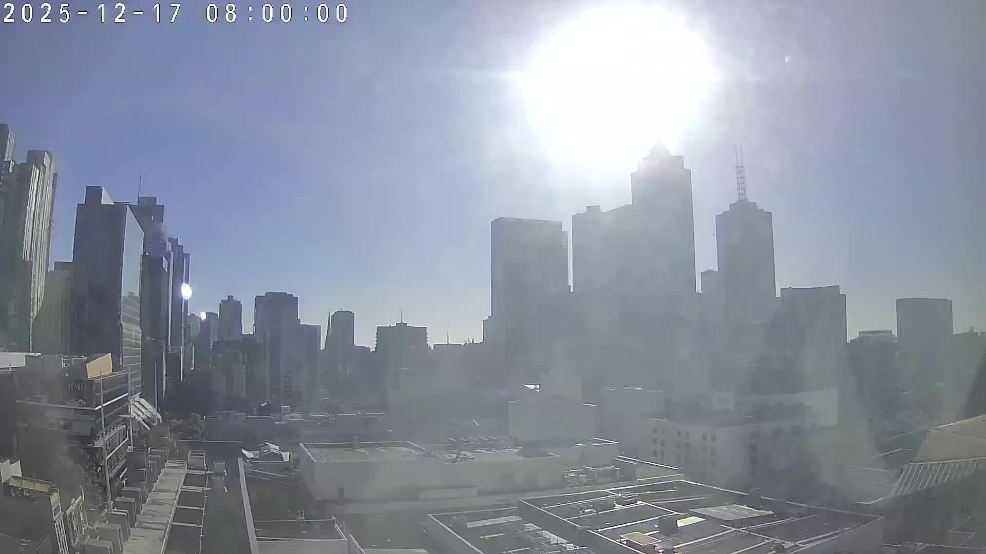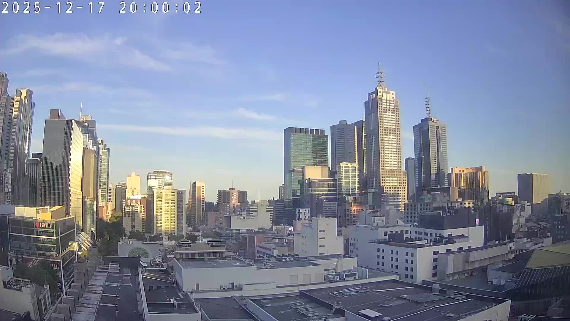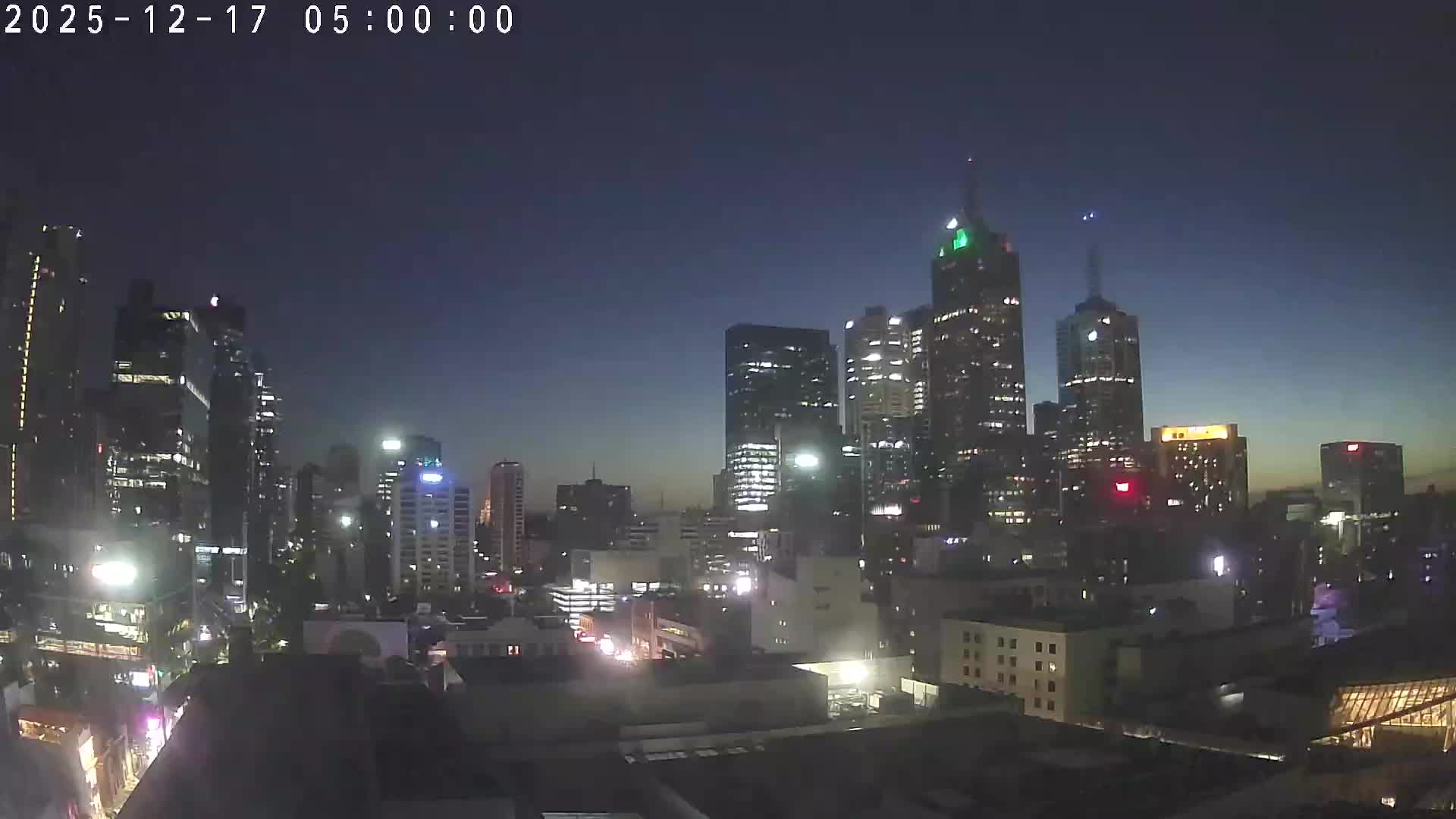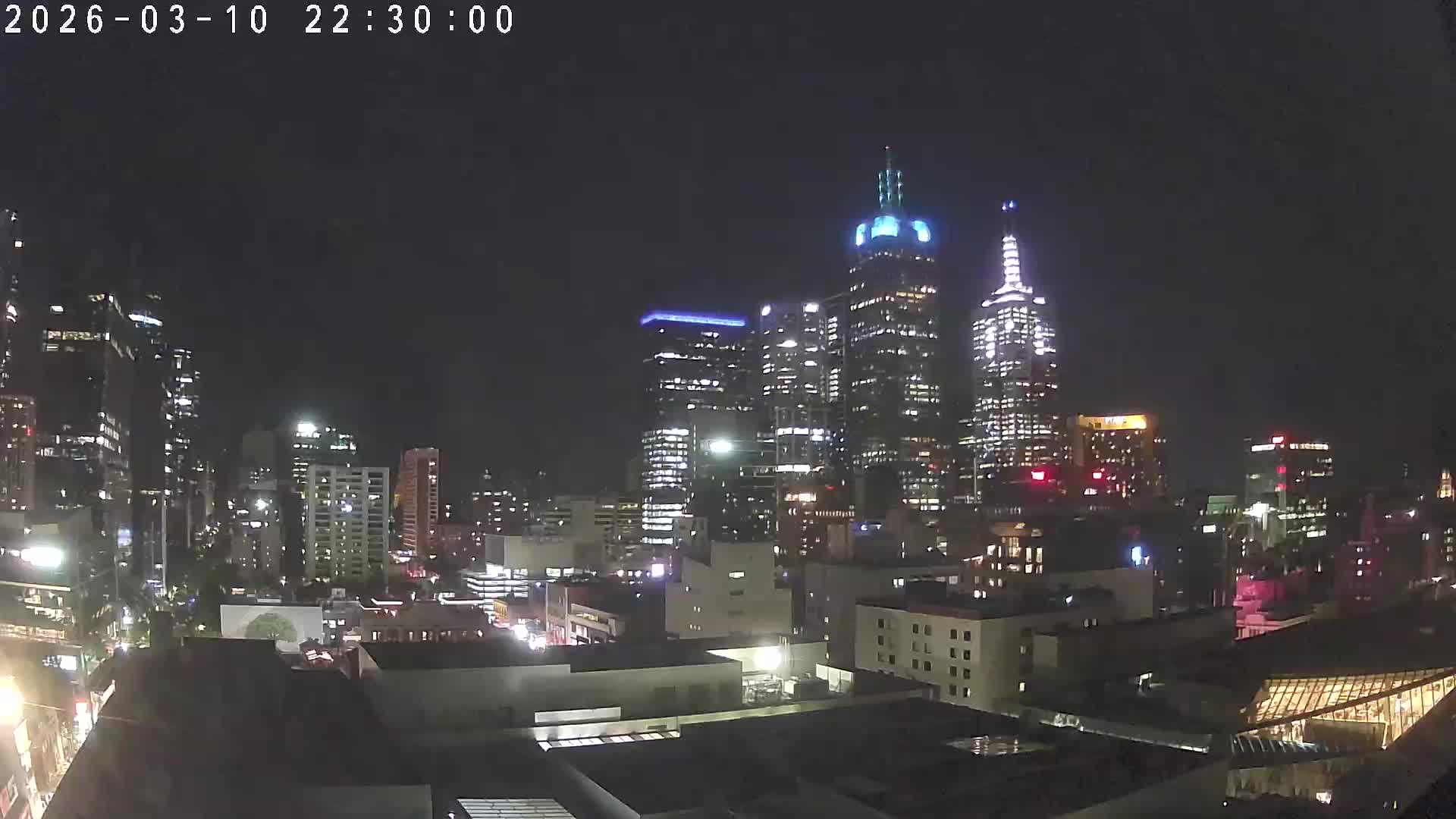 The camera is pointed approximately east towards the towers on the east end of Collins Street Melbourne.