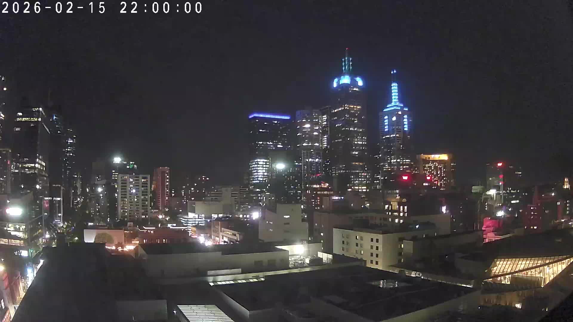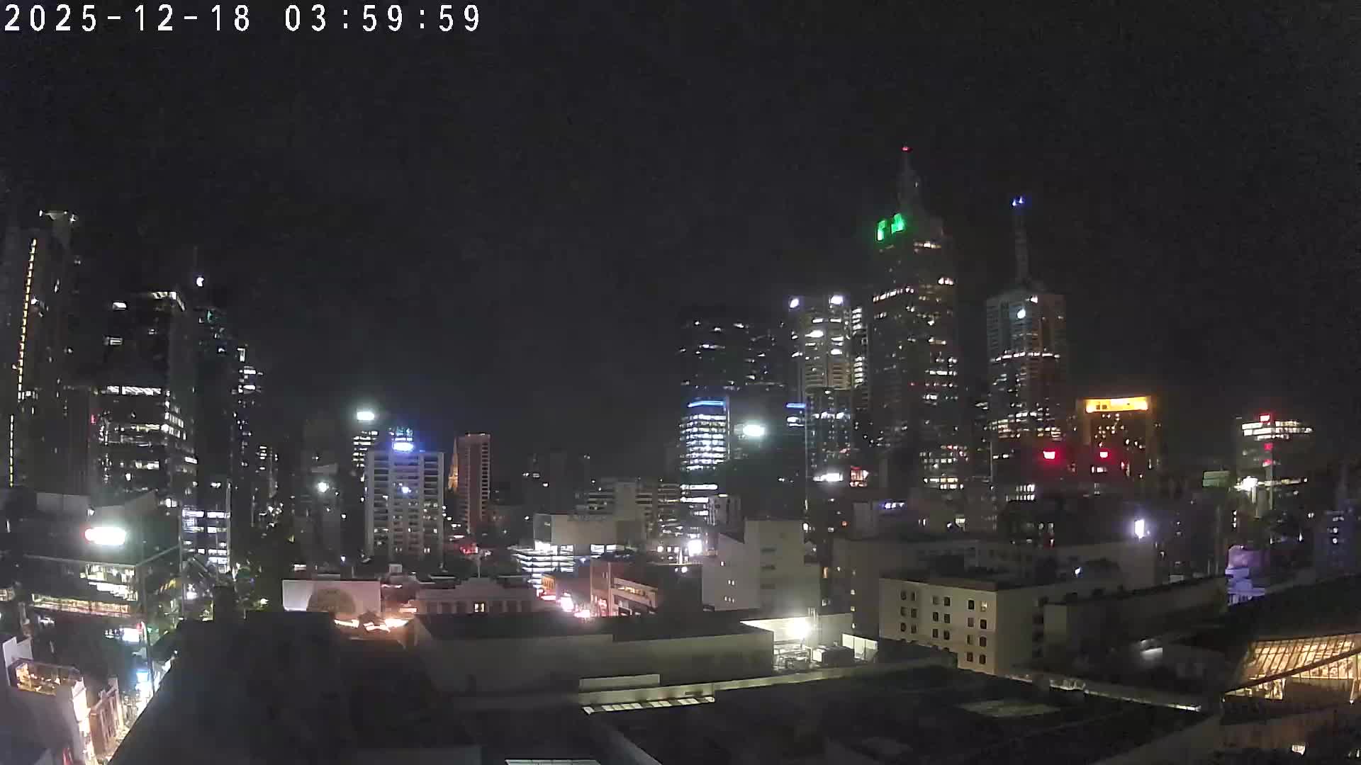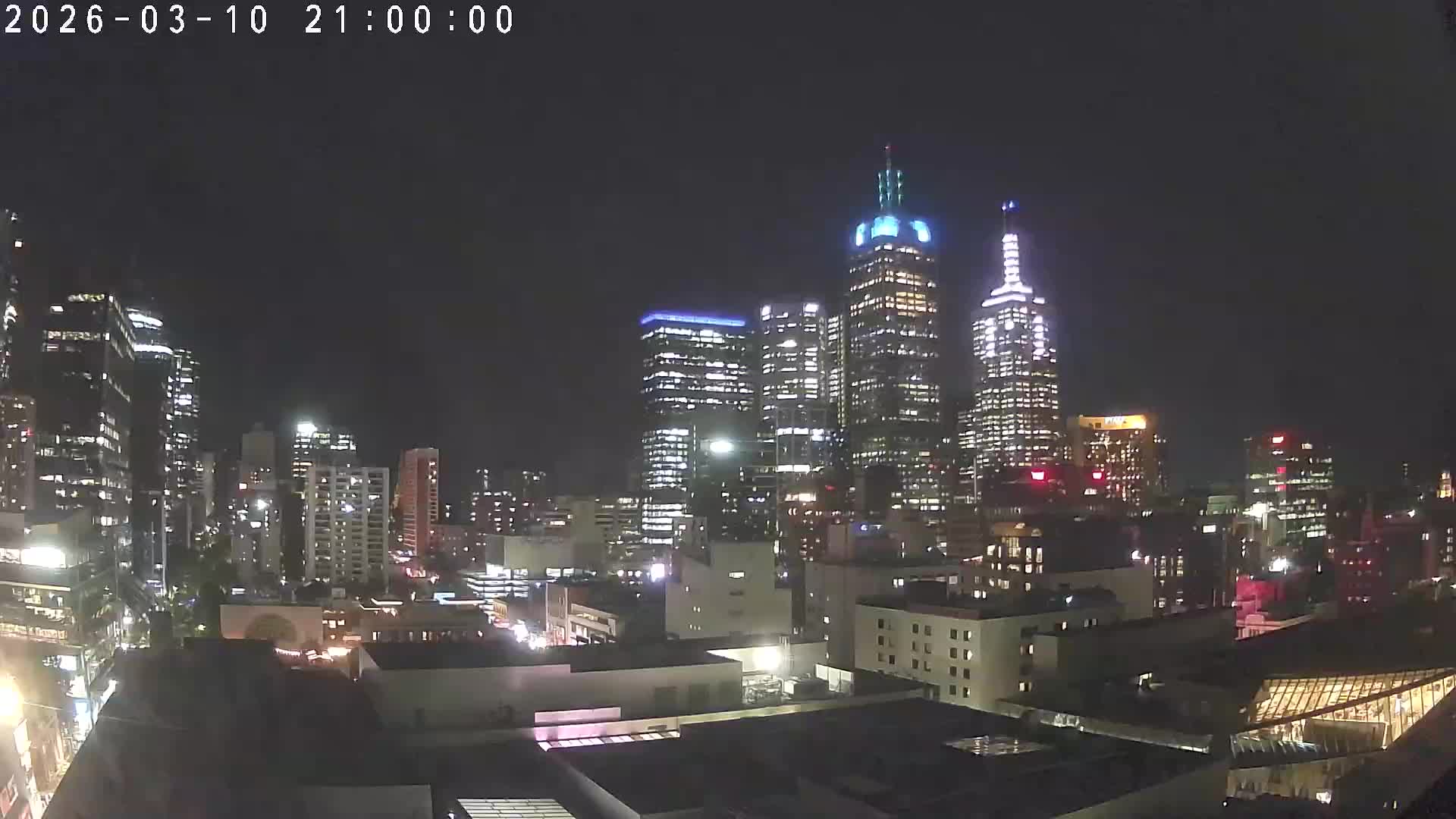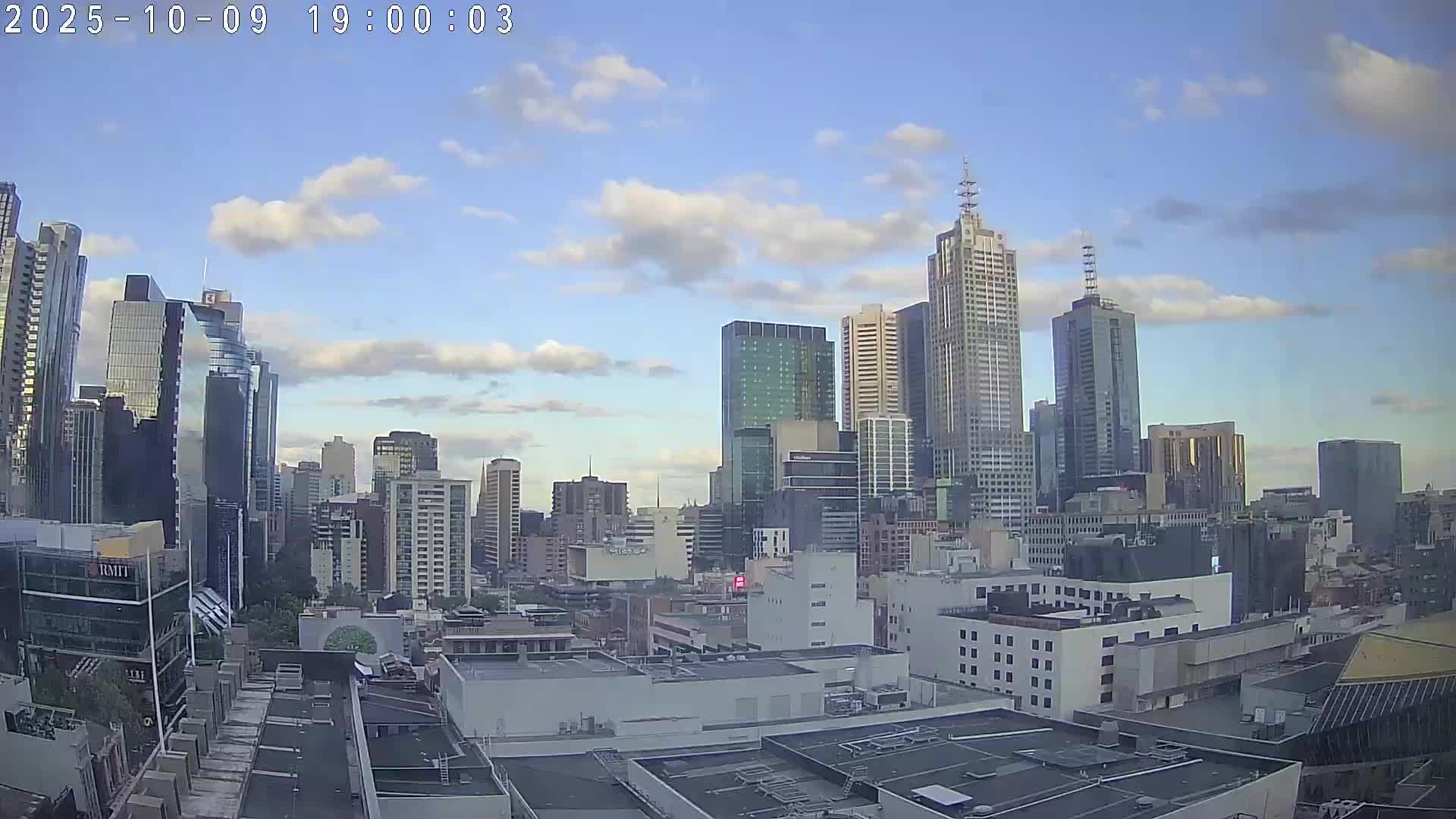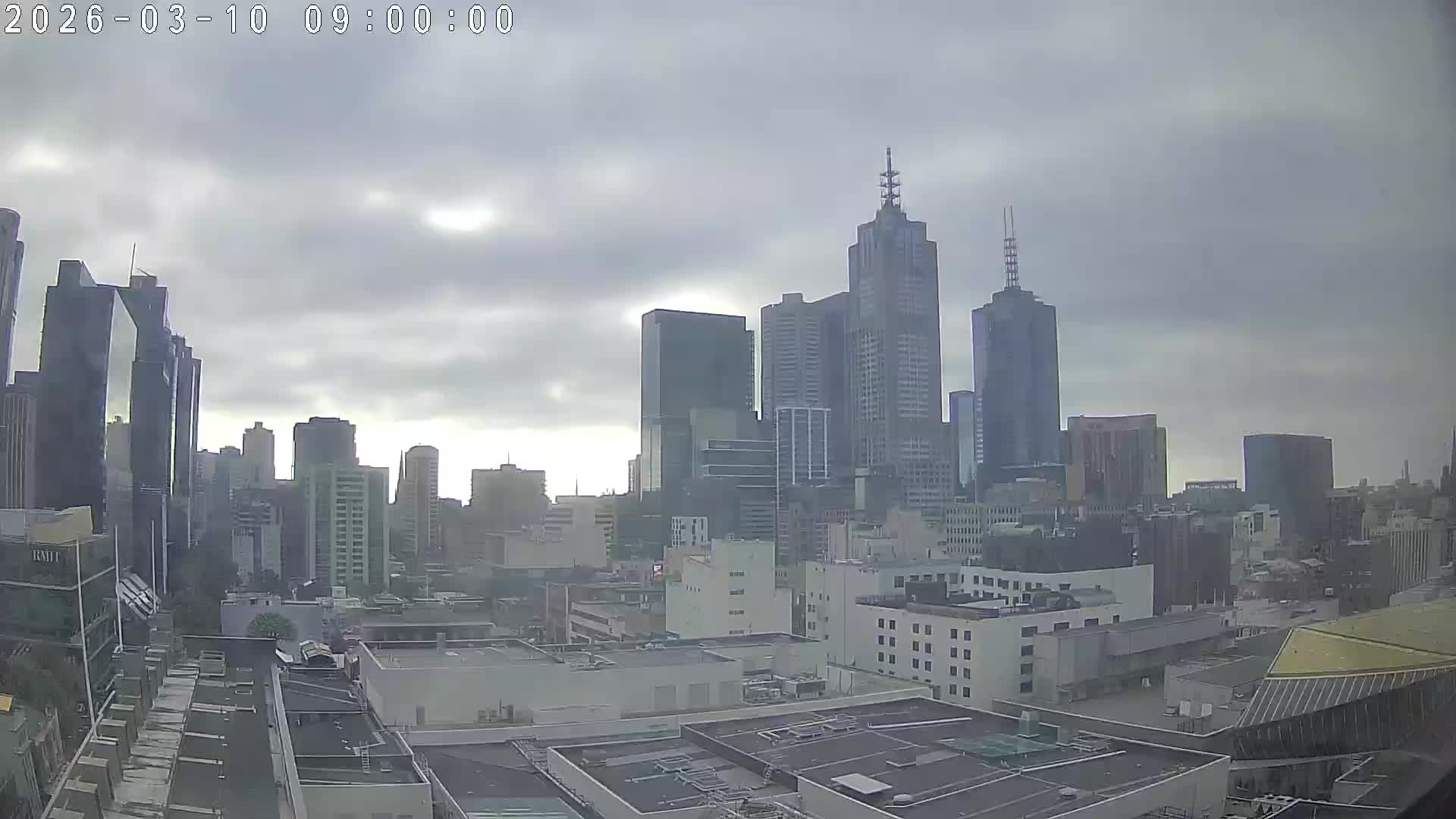 The camera is pointed approximately east towards the towers on the east end of Collins Street Melbourne.