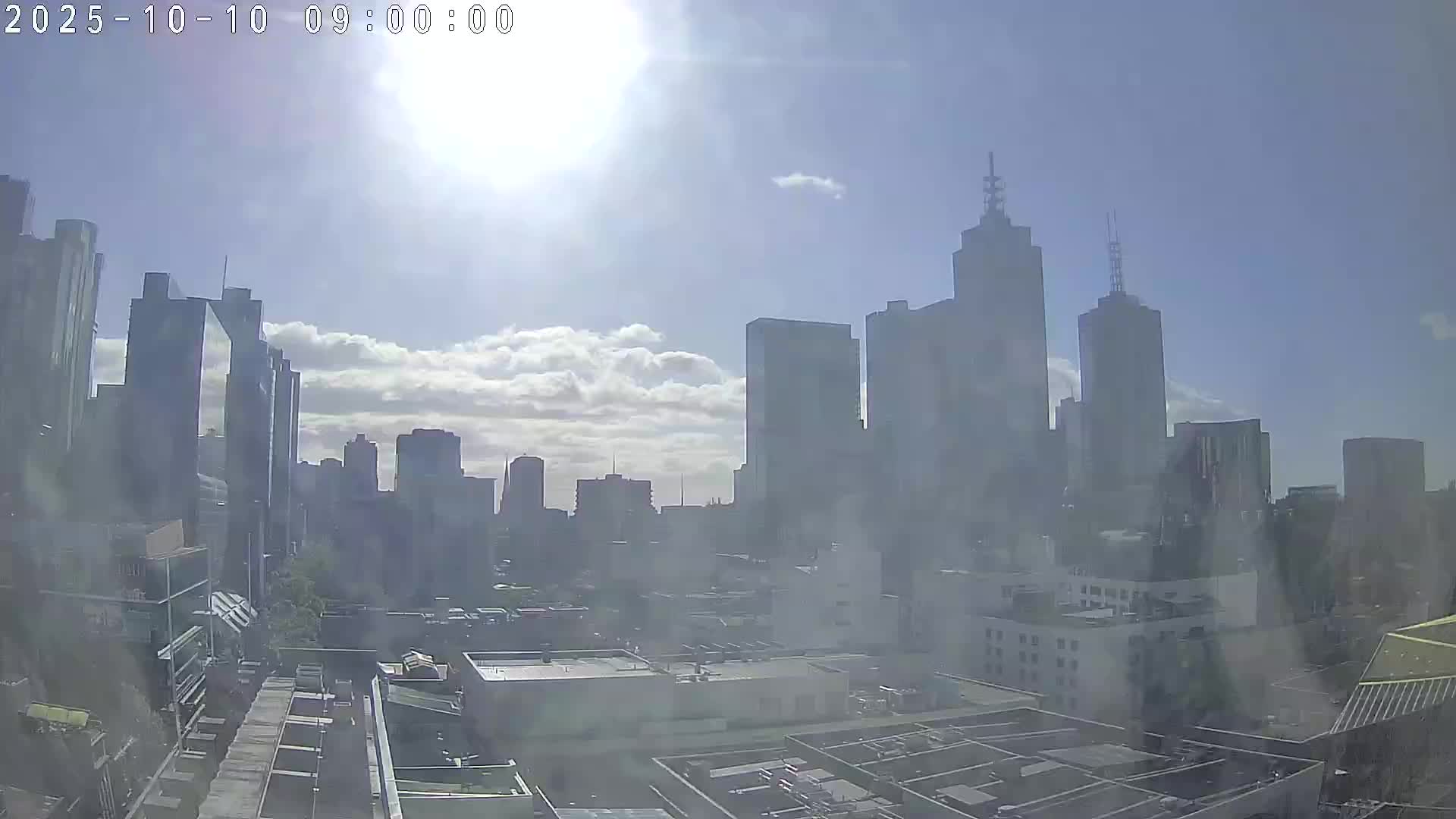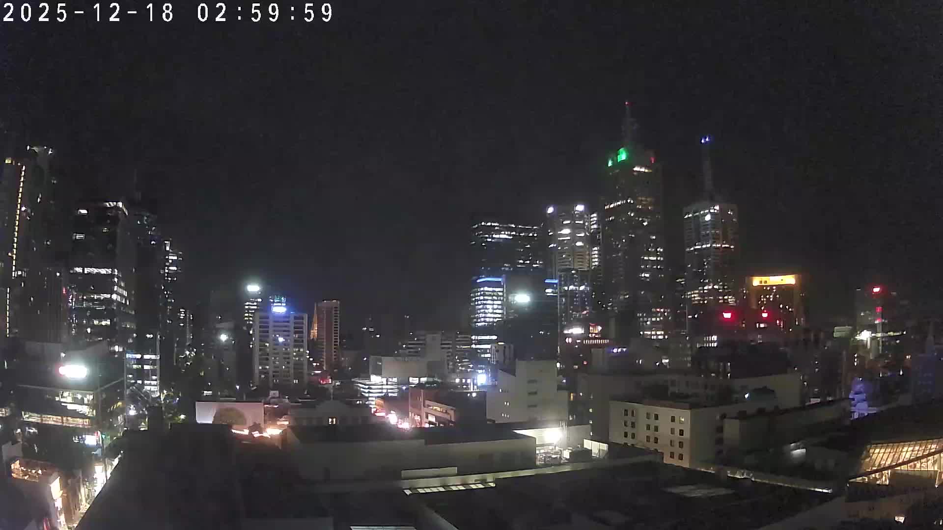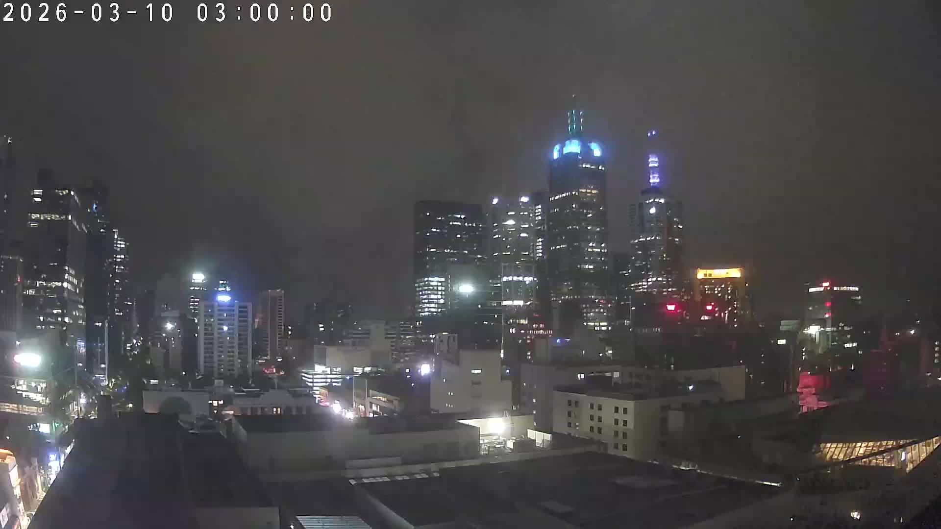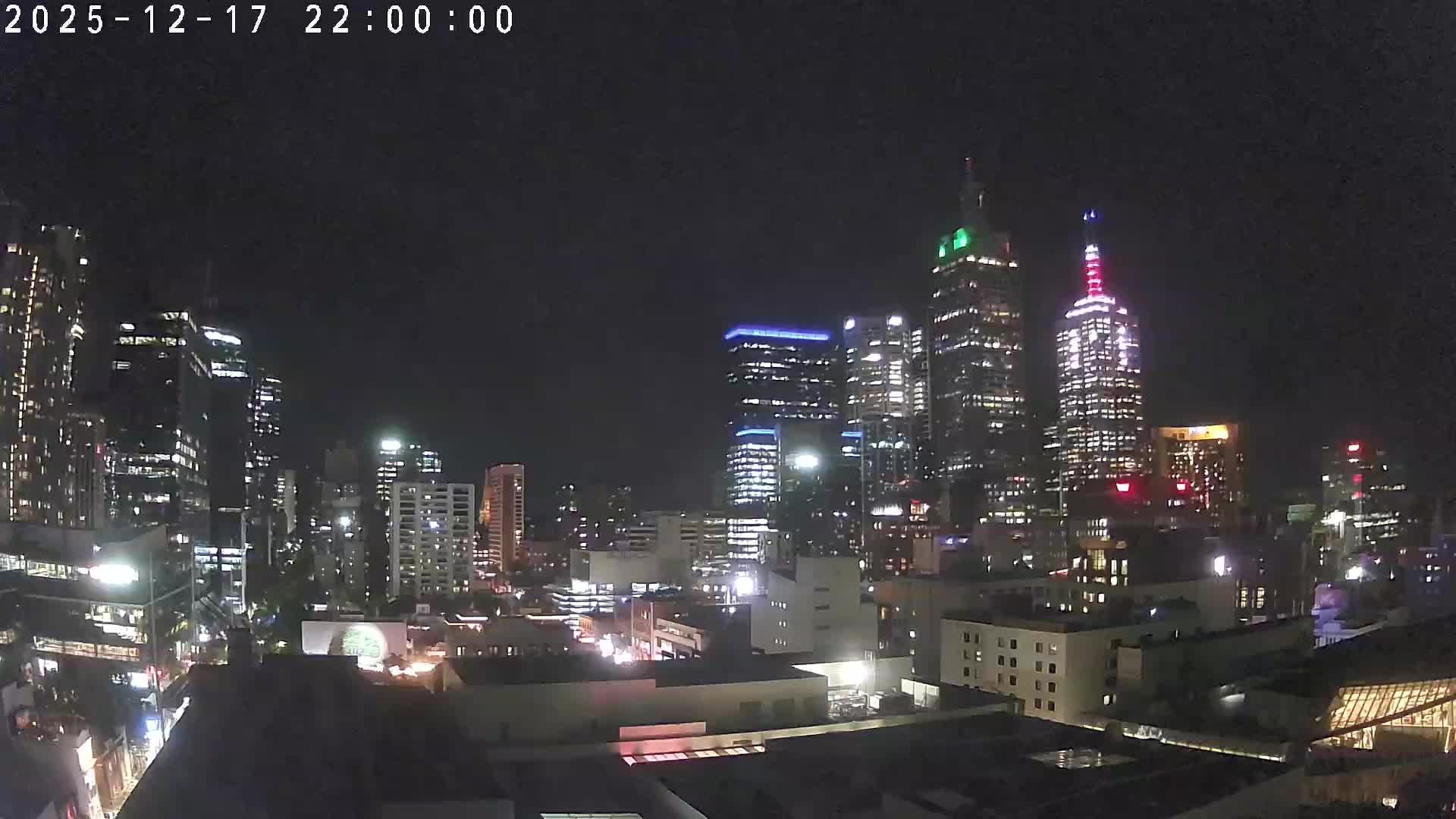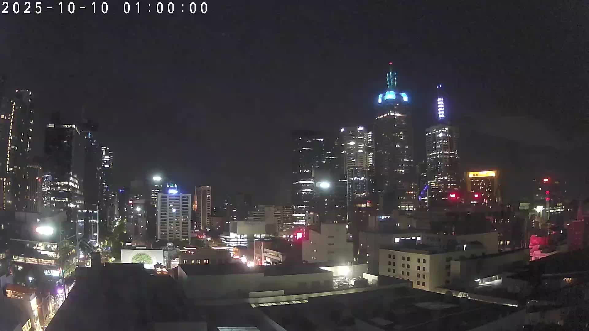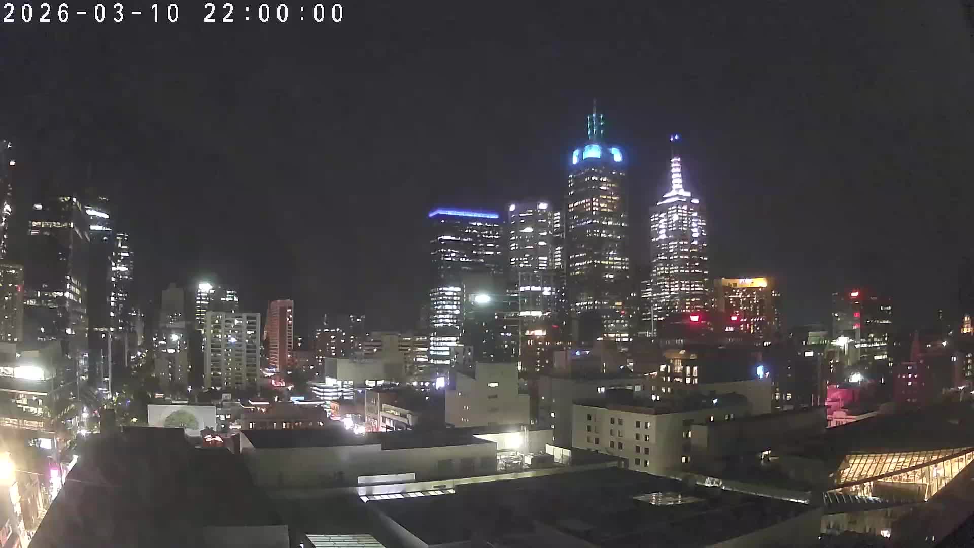 The camera is pointed approximately east towards the towers on the east end of Collins Street Melbourne.