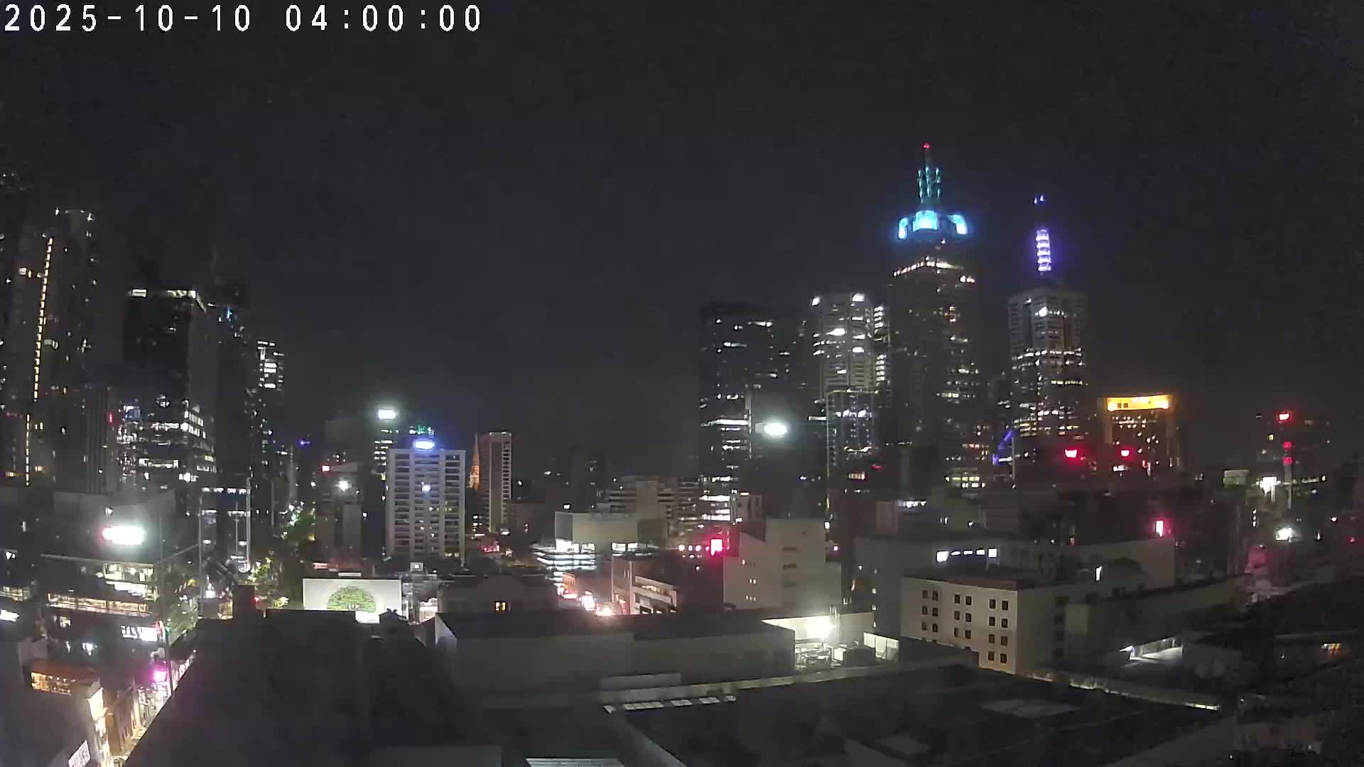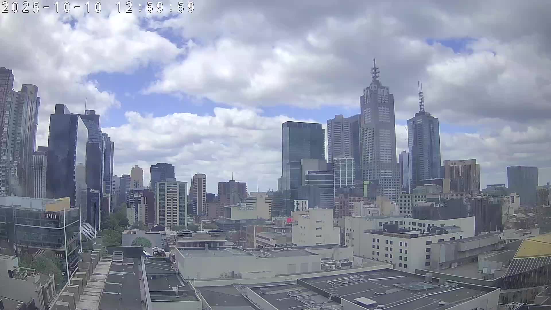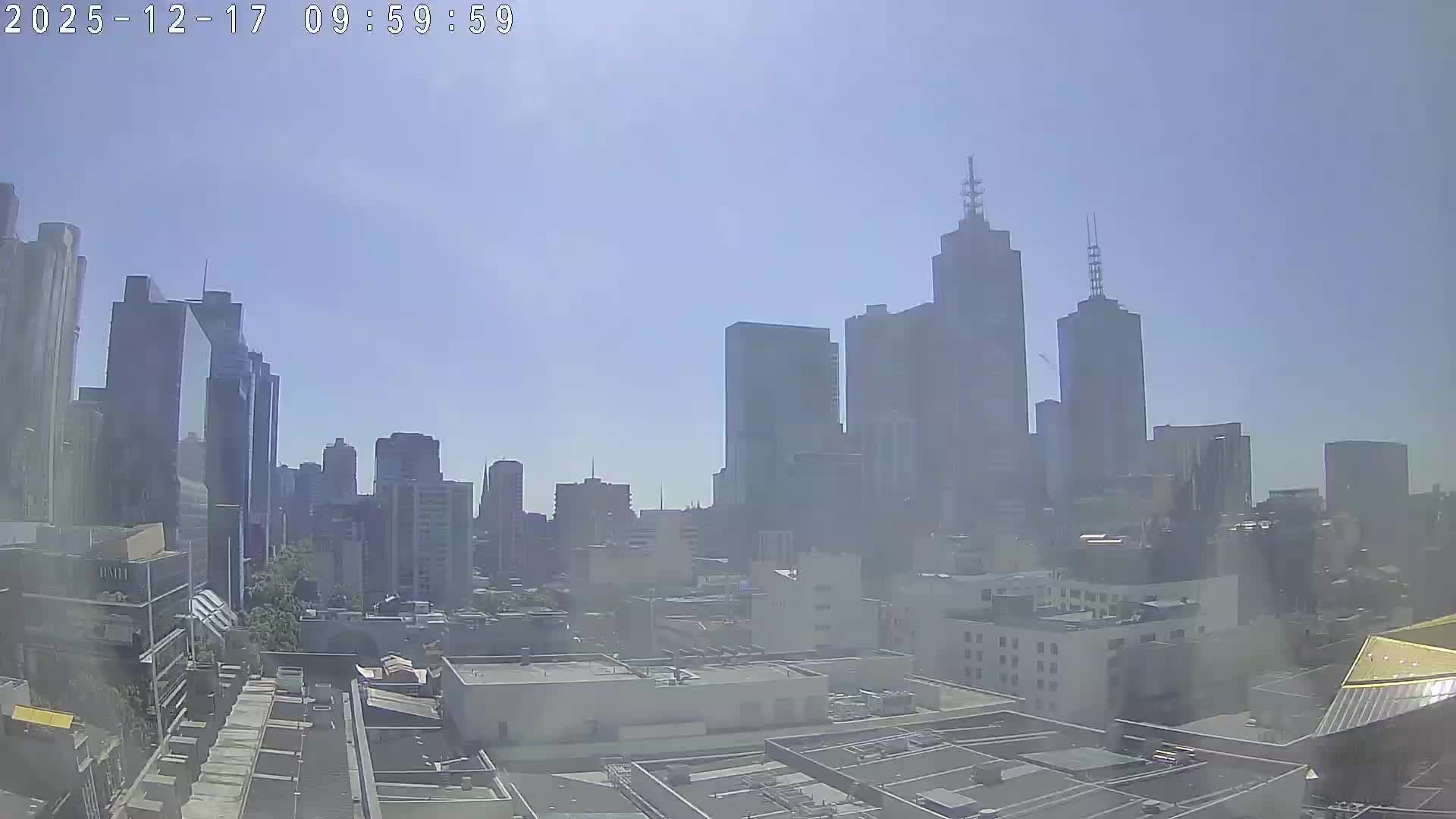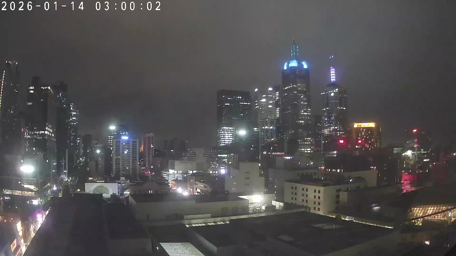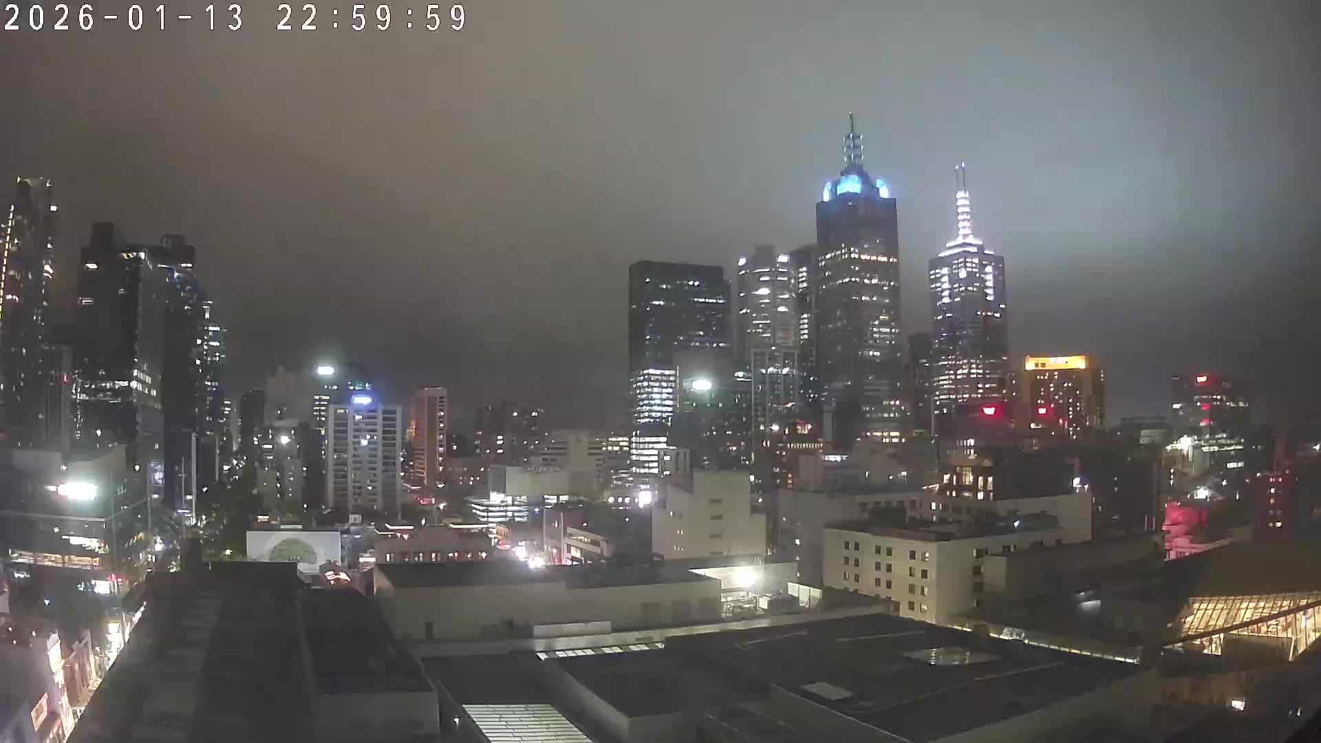 The camera is pointed approximately east towards the towers on the east end of Collins Street Melbourne.