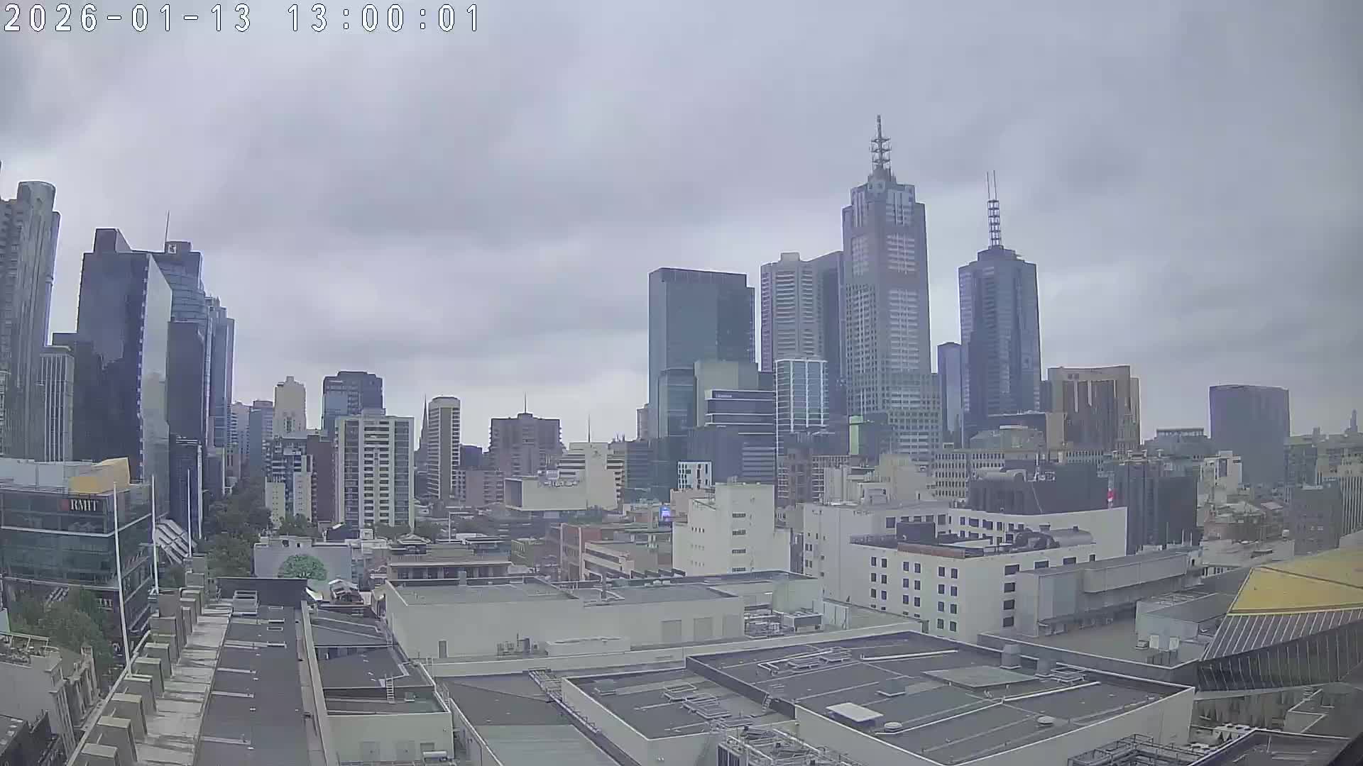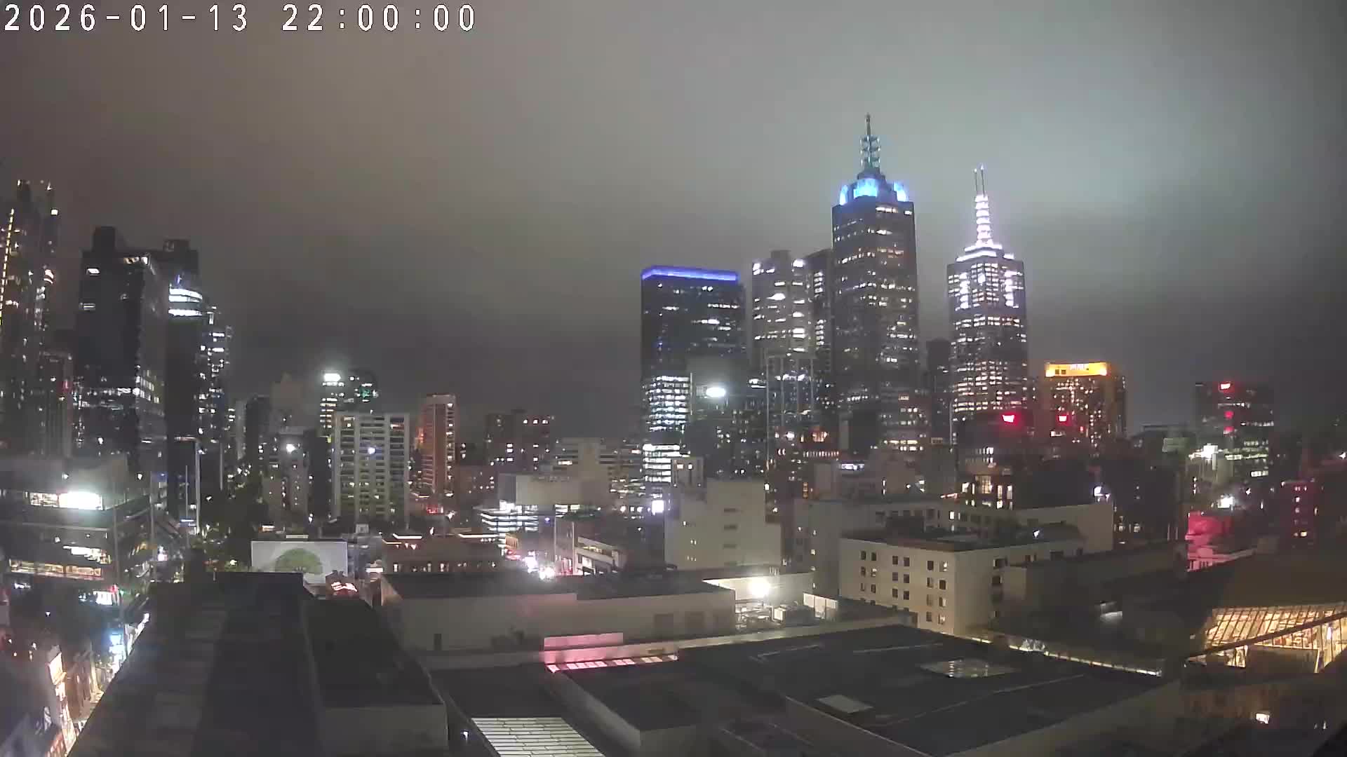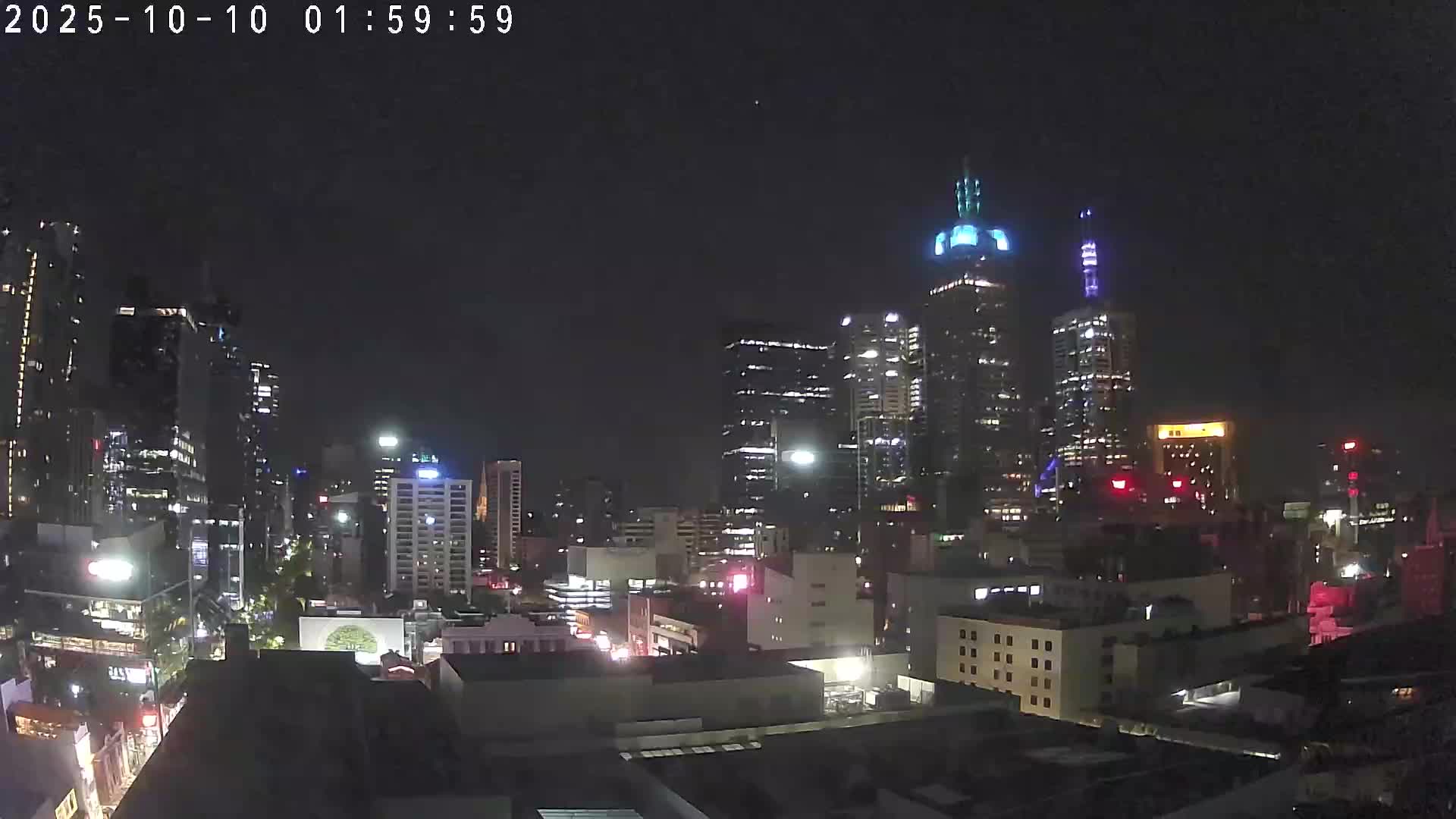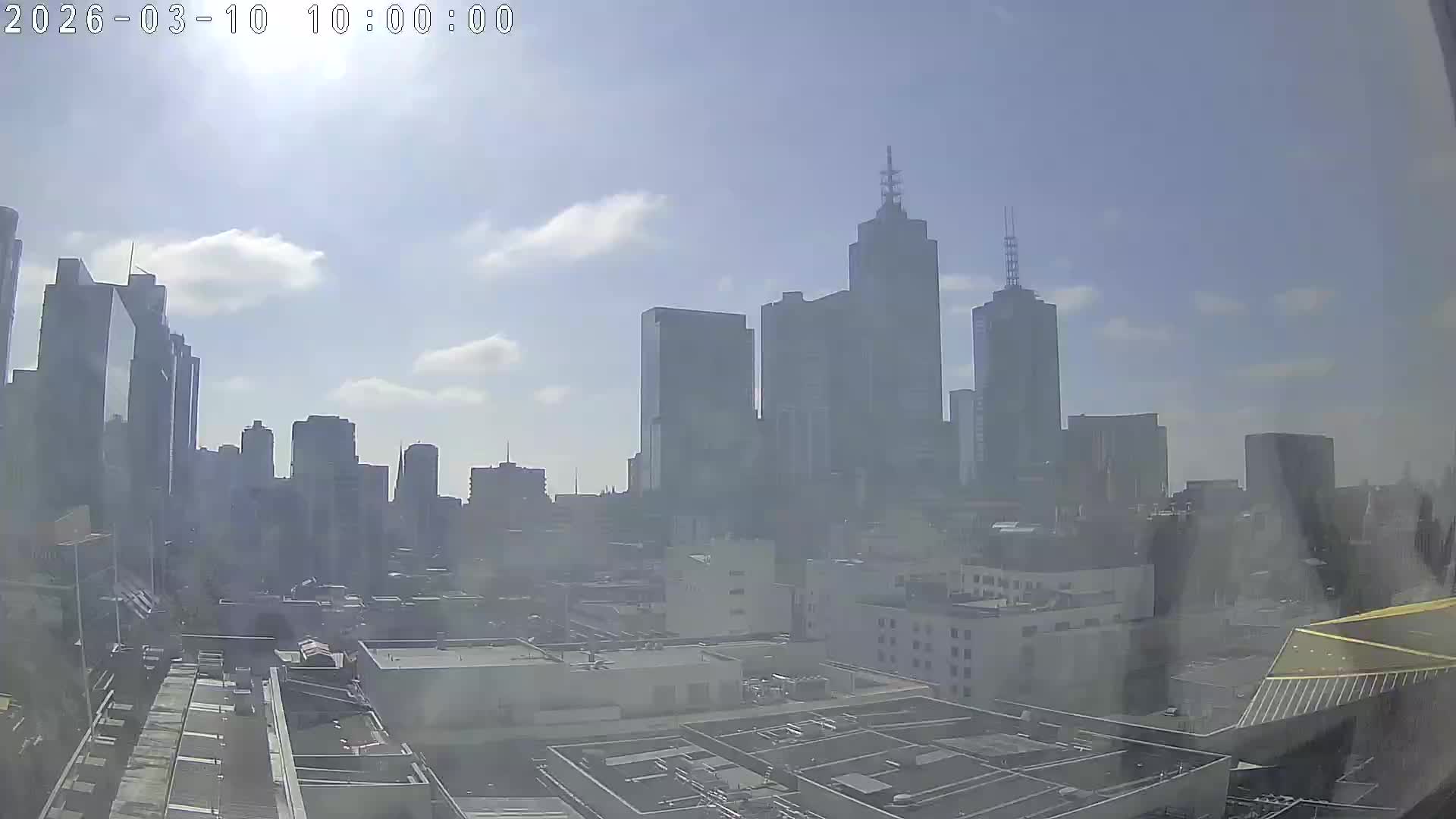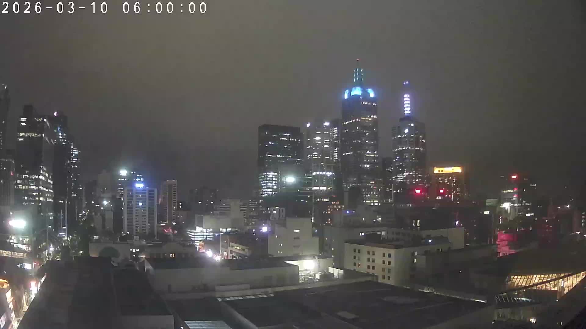 The camera is pointed approximately east towards the towers on the east end of Collins Street Melbourne.