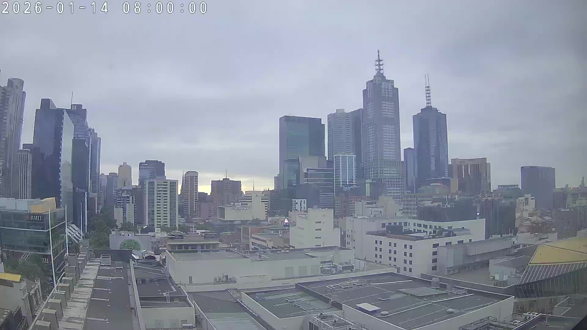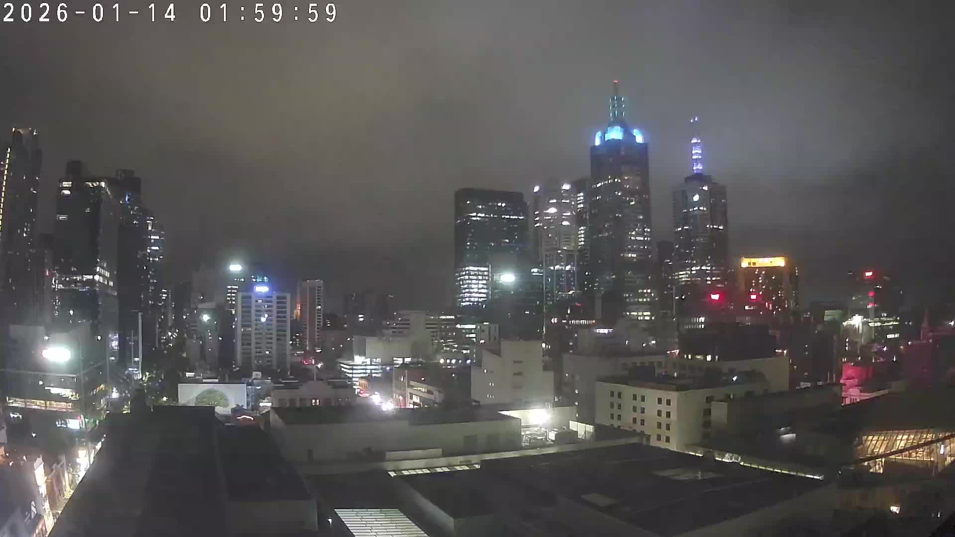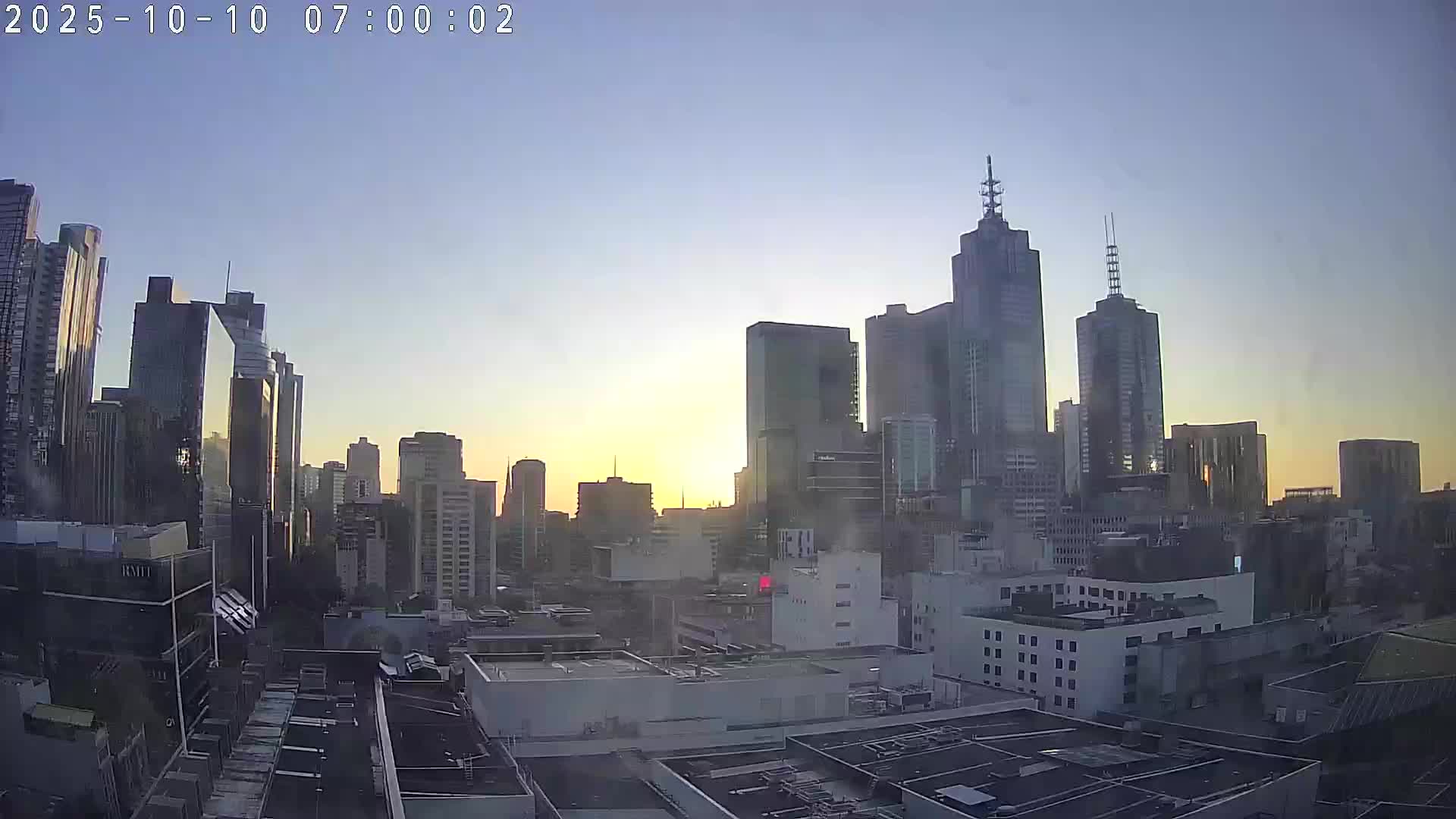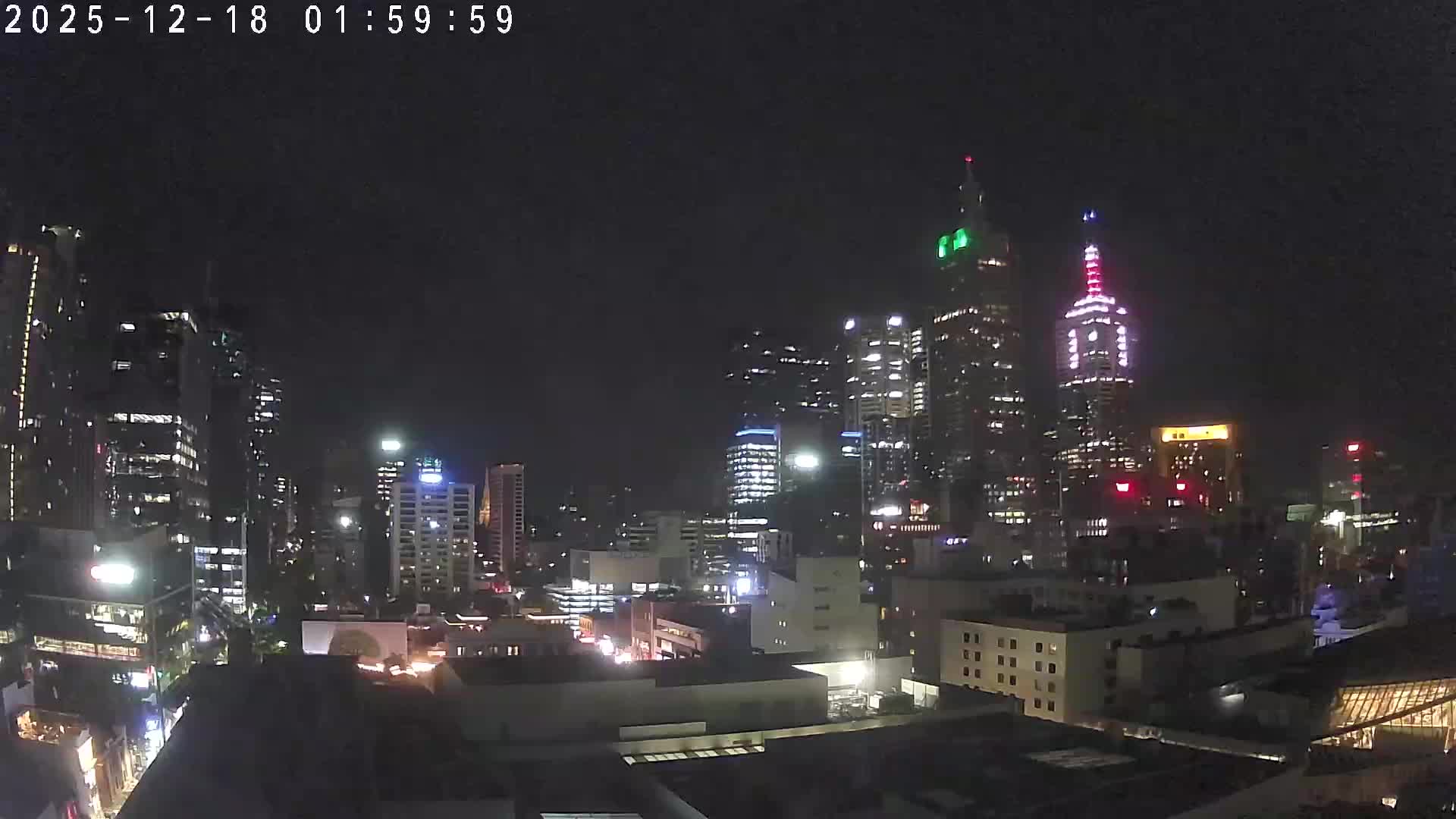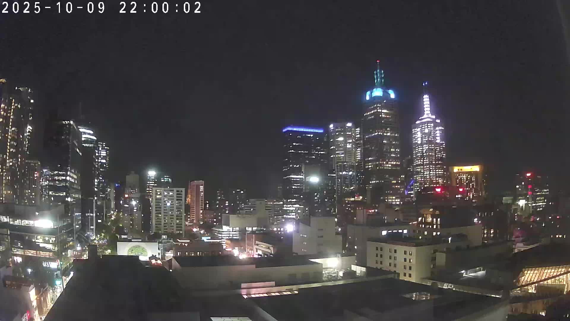 The camera is pointed approximately east towards the towers on the east end of Collins Street Melbourne.