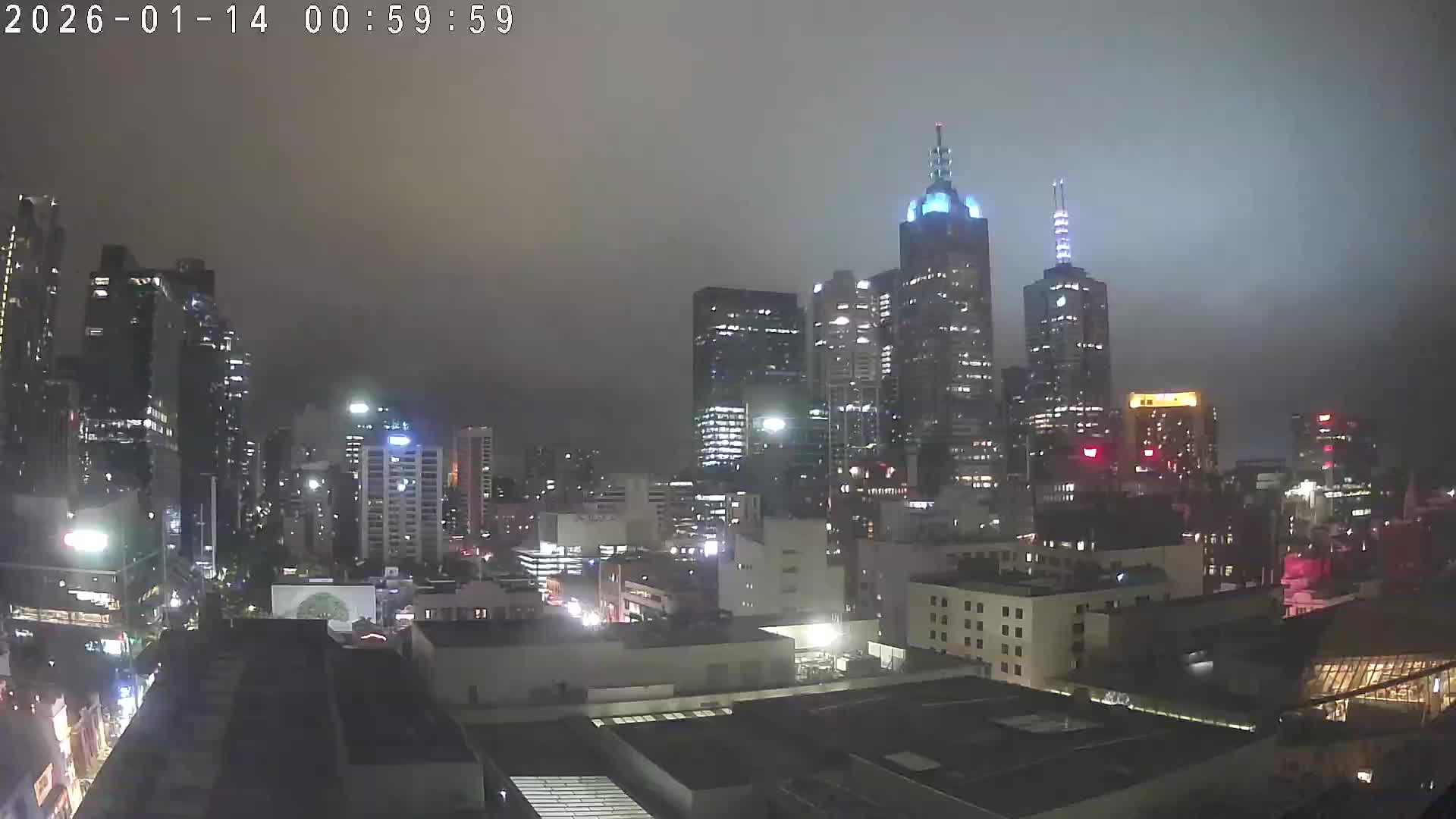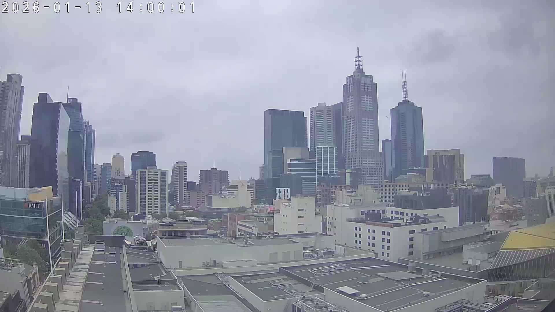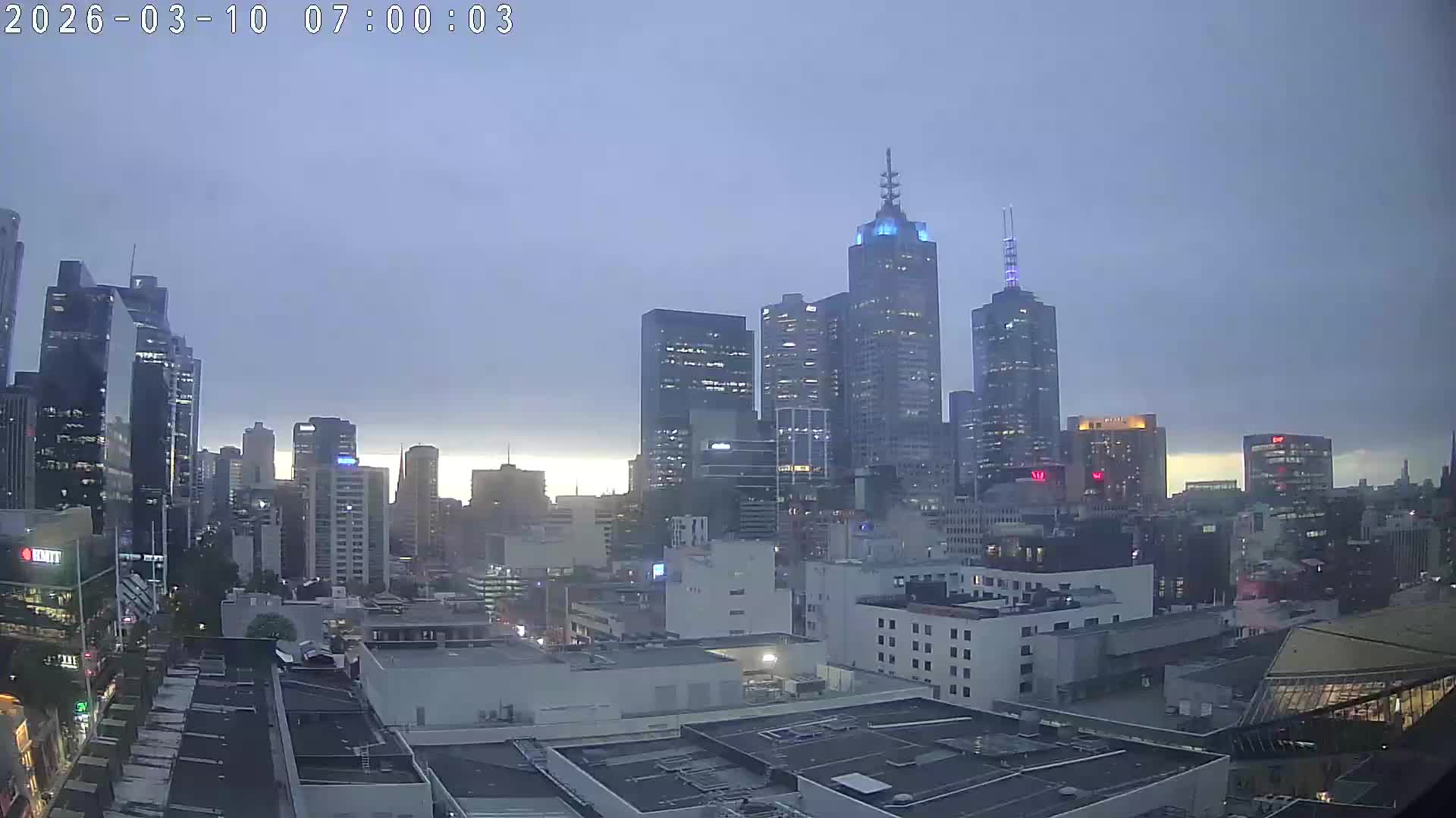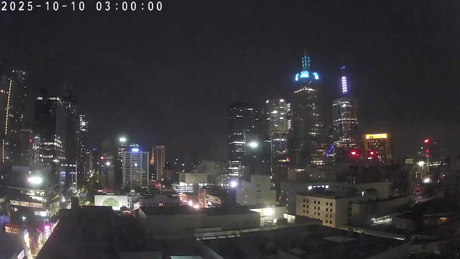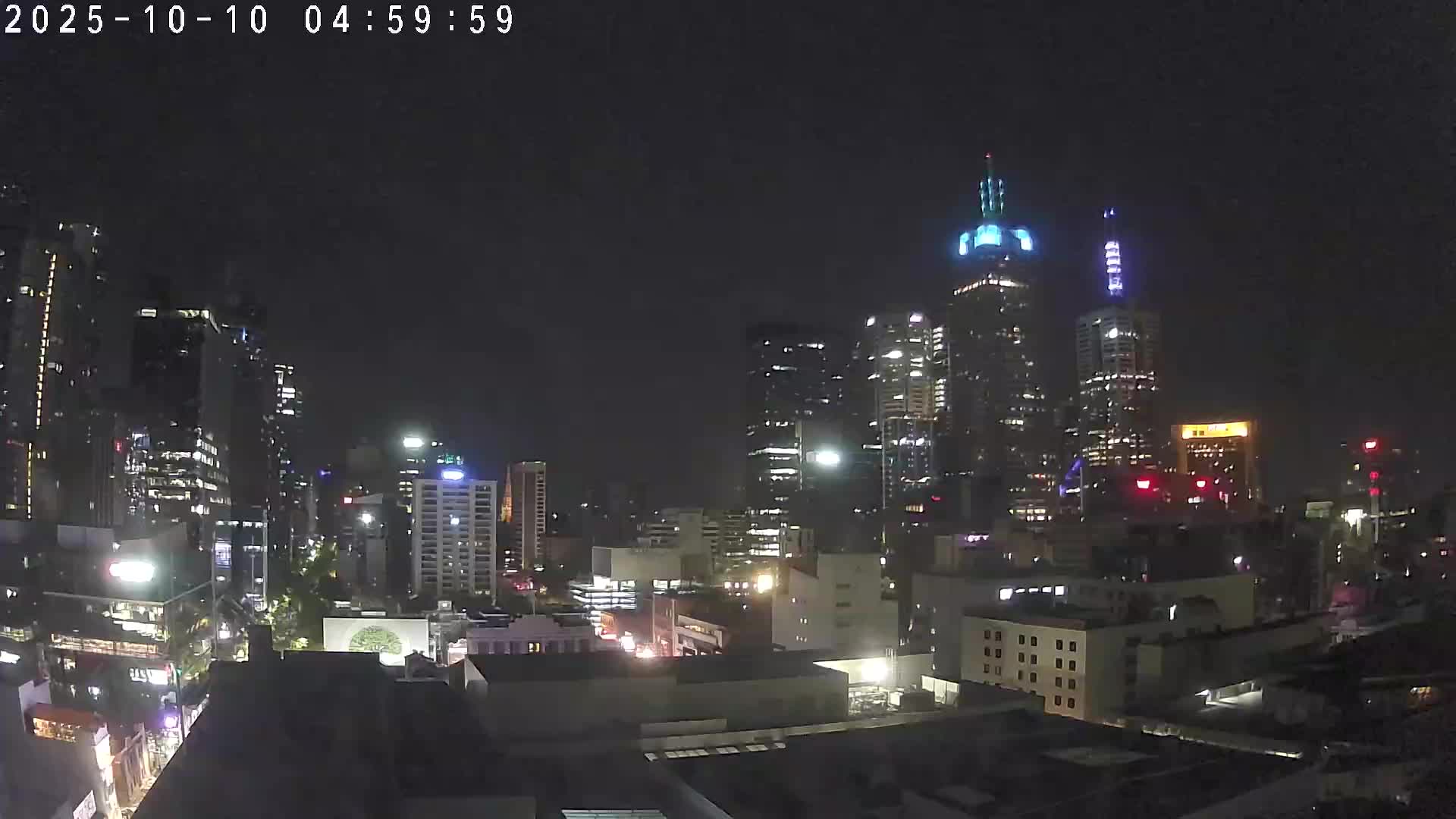 The camera is pointed approximately east towards the towers on the east end of Collins Street Melbourne.