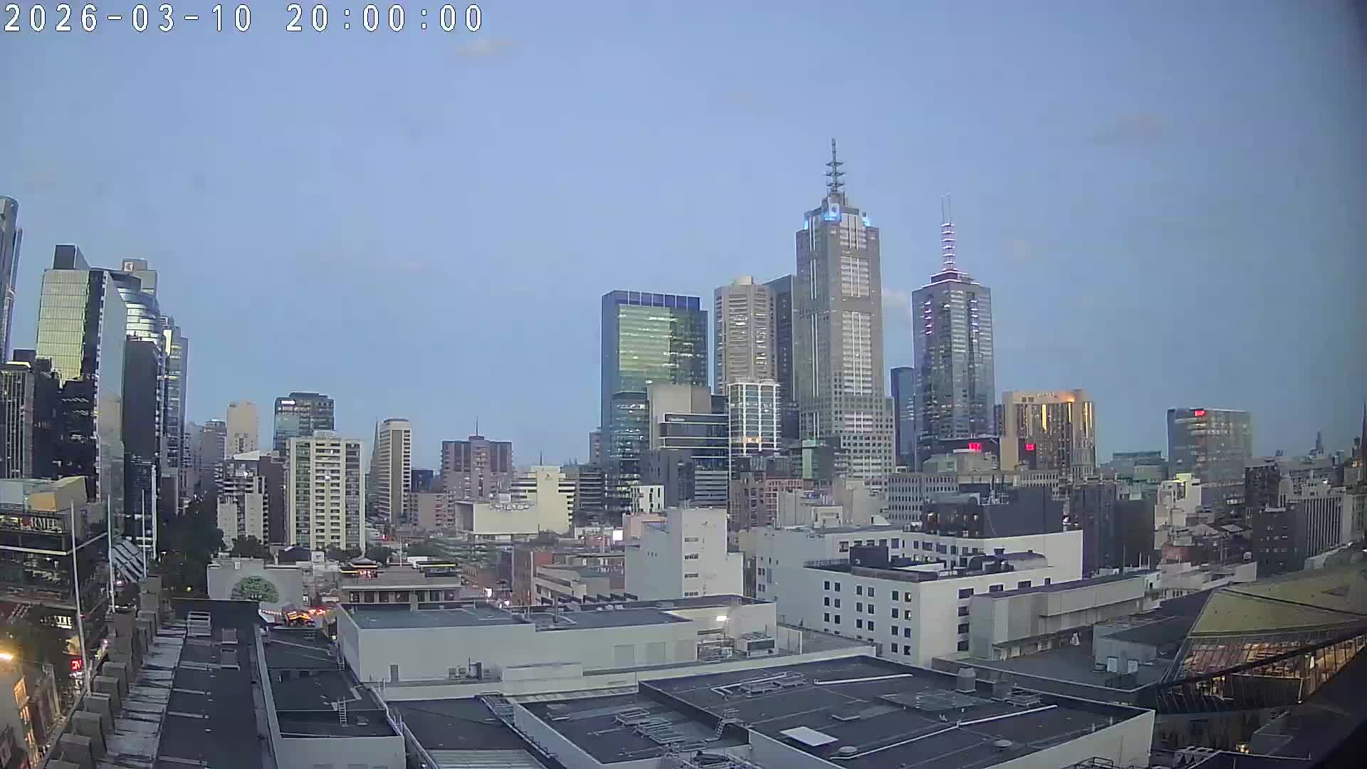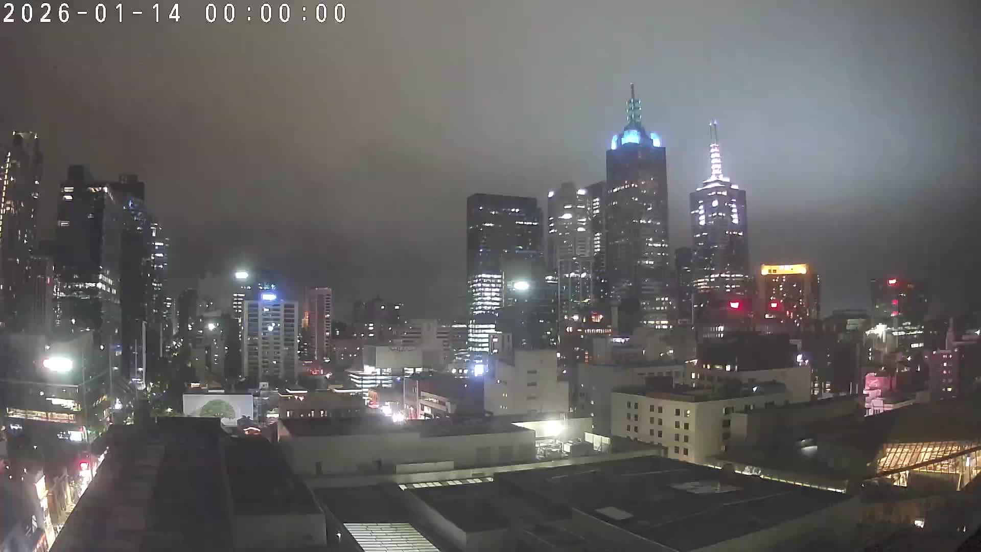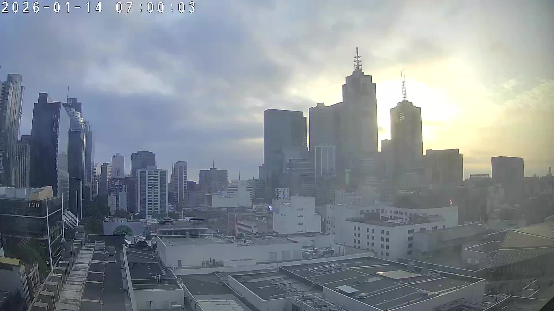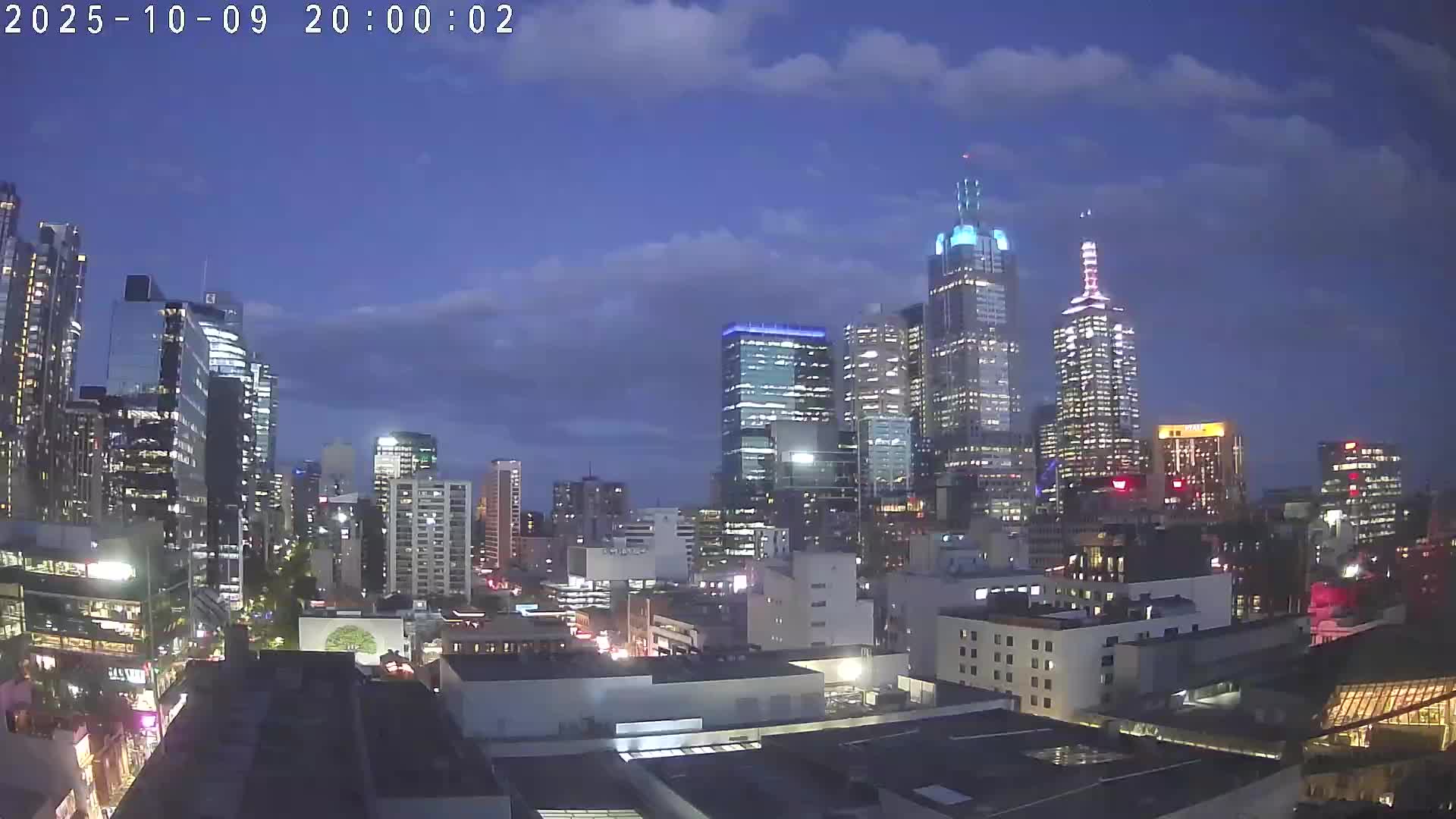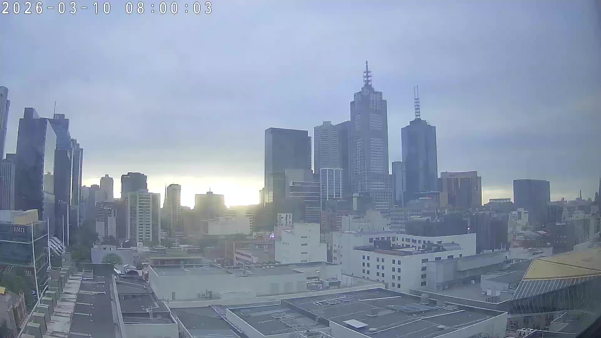 The camera is pointed approximately east towards the towers on the east end of Collins Street Melbourne.