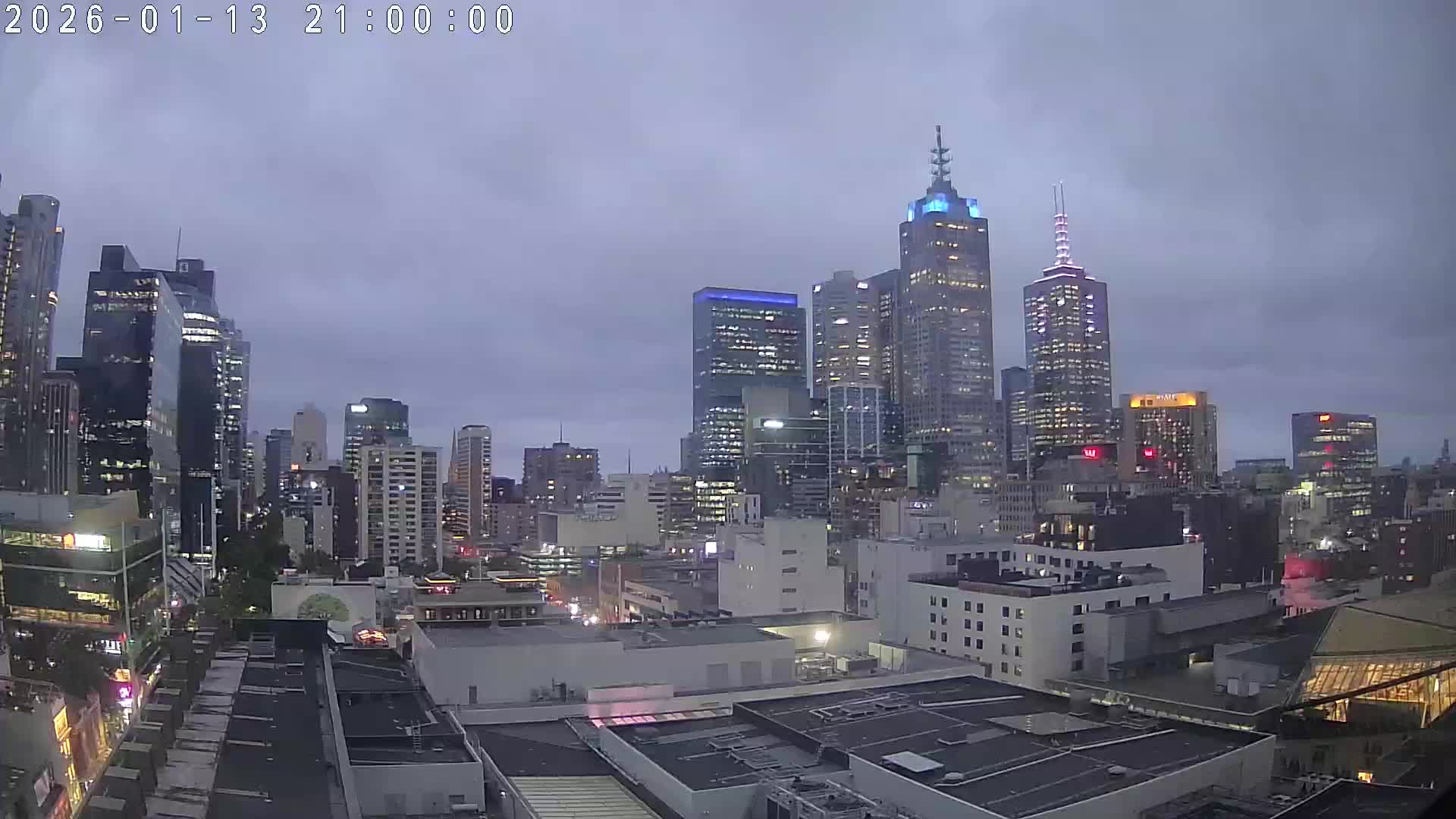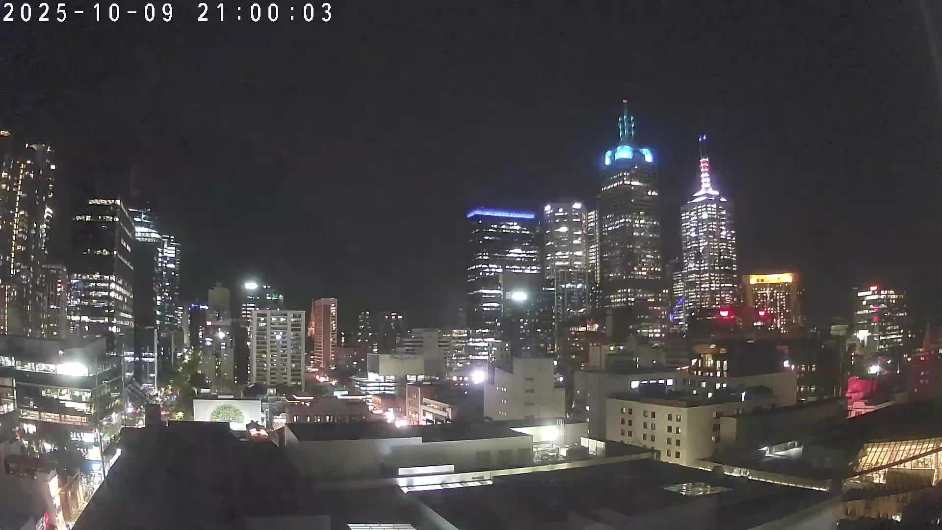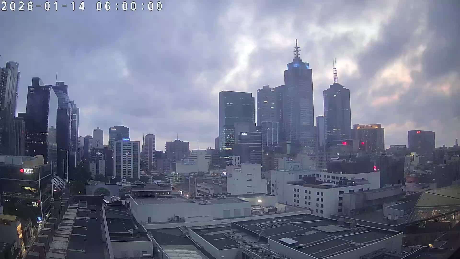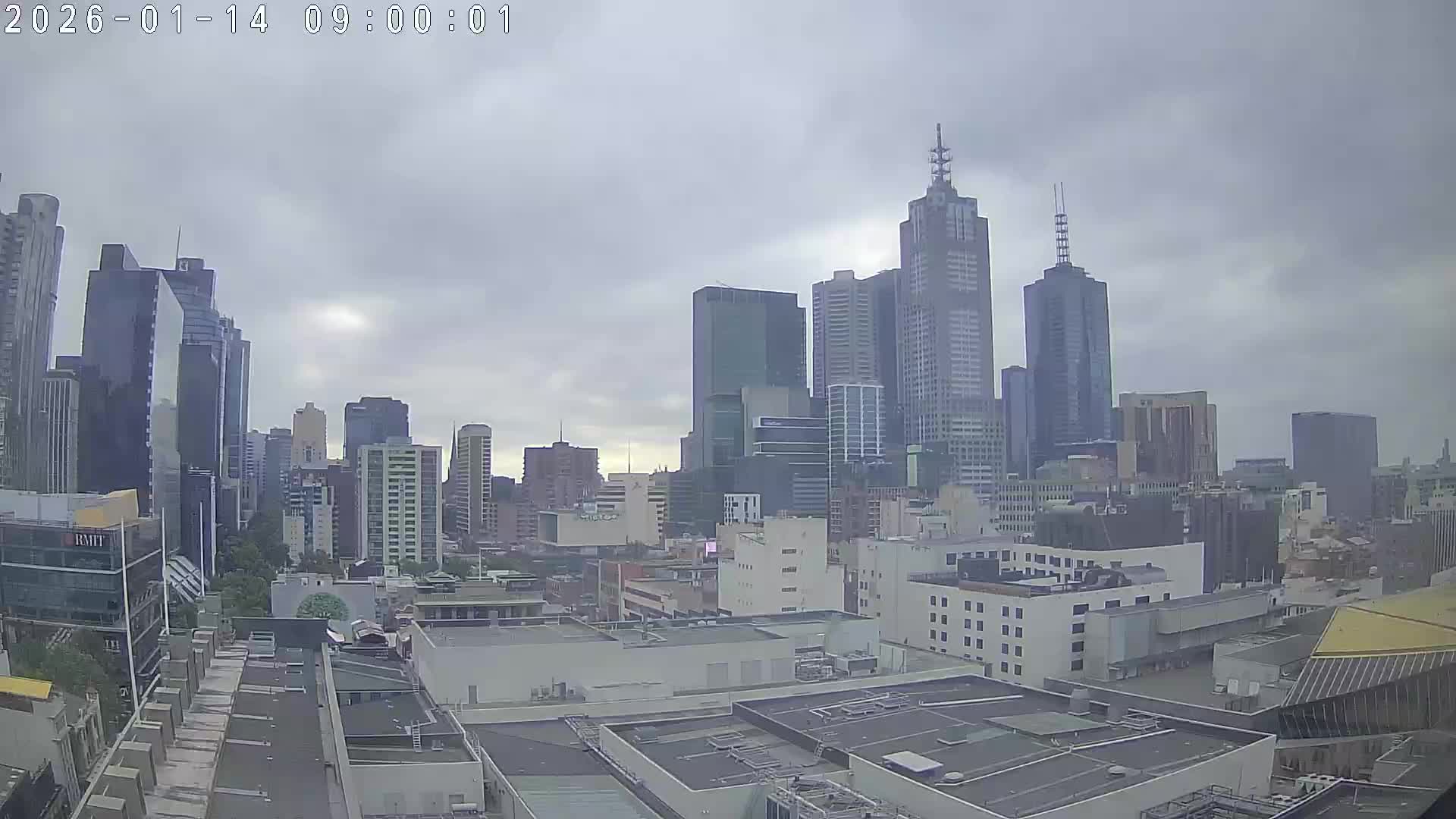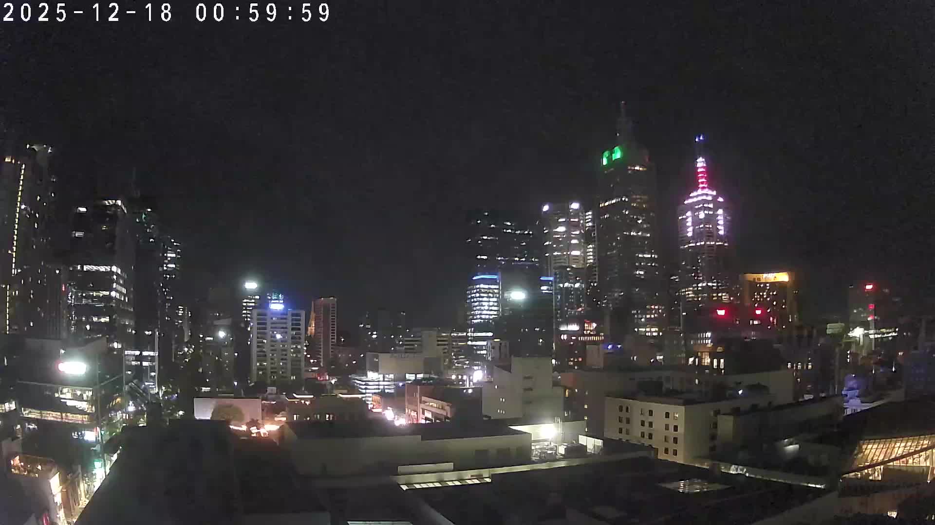 The camera is pointed approximately east towards the towers on the east end of Collins Street Melbourne.